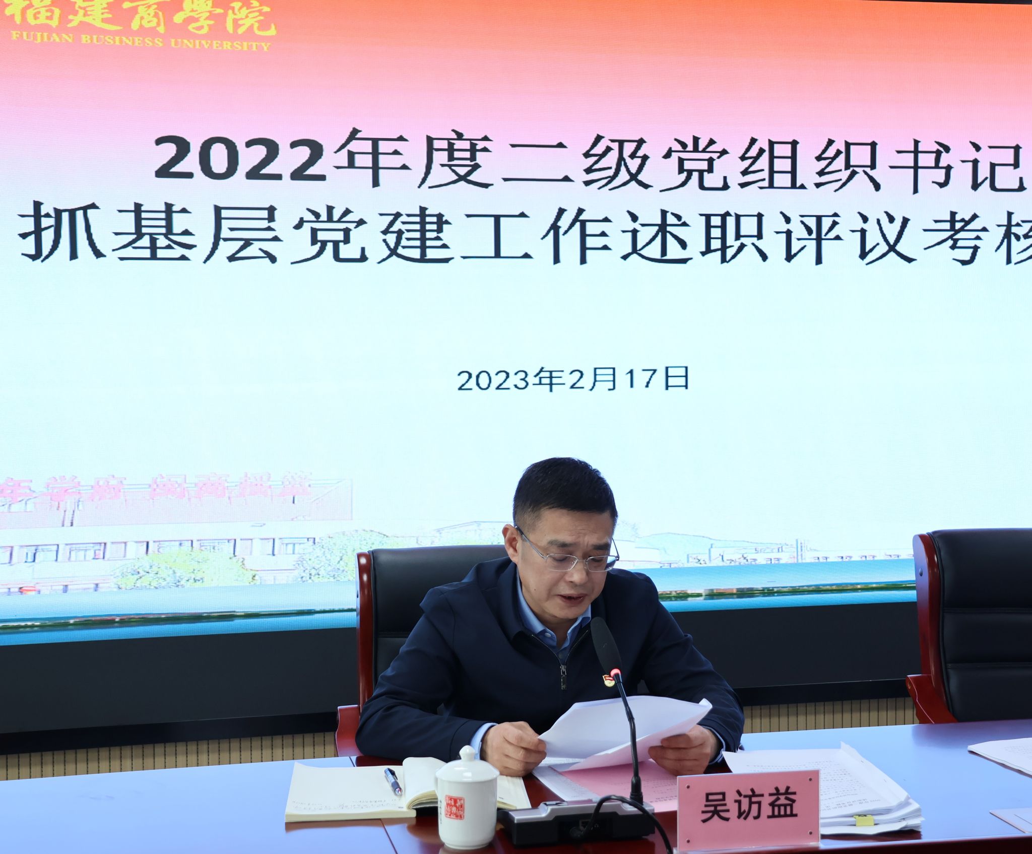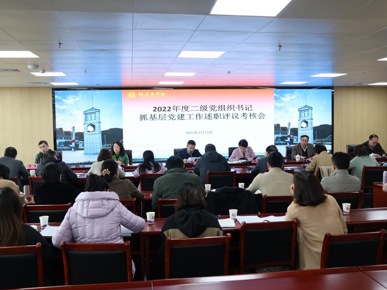 2月17日下午,永利官网2022年度二级党组织书记抓基层党建工作述职评议考核会在连江校区举行。全体在家校领导、机关党群部门负责人、二级学院党政负责人、人大代表、政协委员代表、学生代表等参加会议。会议由校党委副书记徐晓丹主持。