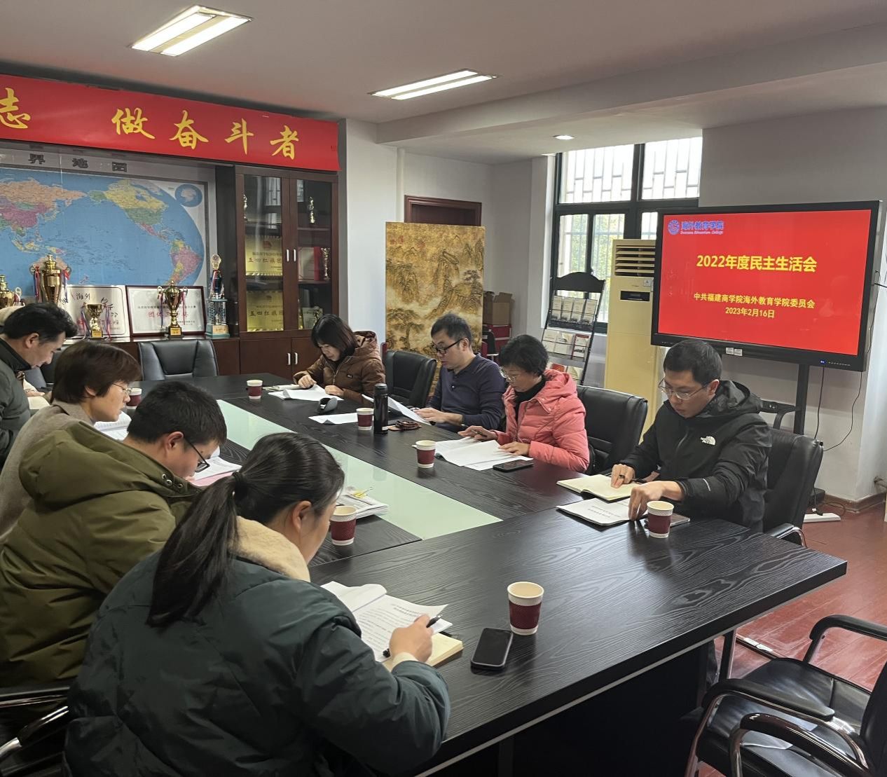 副校长萧罡参加指导海外教育学院民主生活会