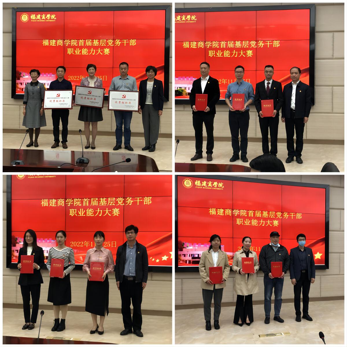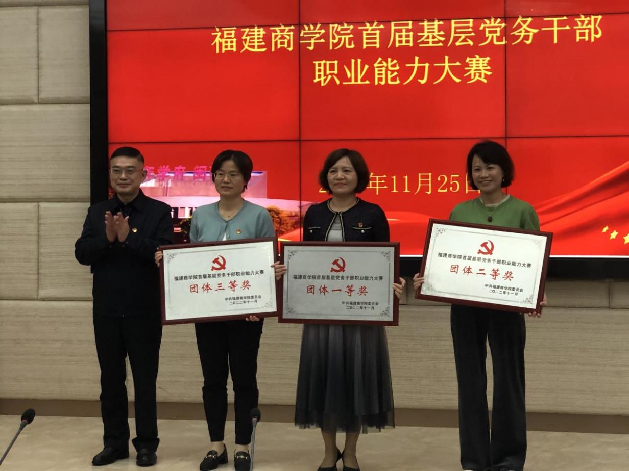 经过激烈角逐,财务与会计学院党委、艺术设计学院党委、海外教育学院党委分别荣获团体一、二、三等奖,外国语学院党委、国际经贸学院党委、信息工程学院党委荣获优秀组织奖。大赛还为主题党日策划、微党课、谈心谈话三个赛项一、二、三等奖获奖单位和个人颁发荣誉证书。