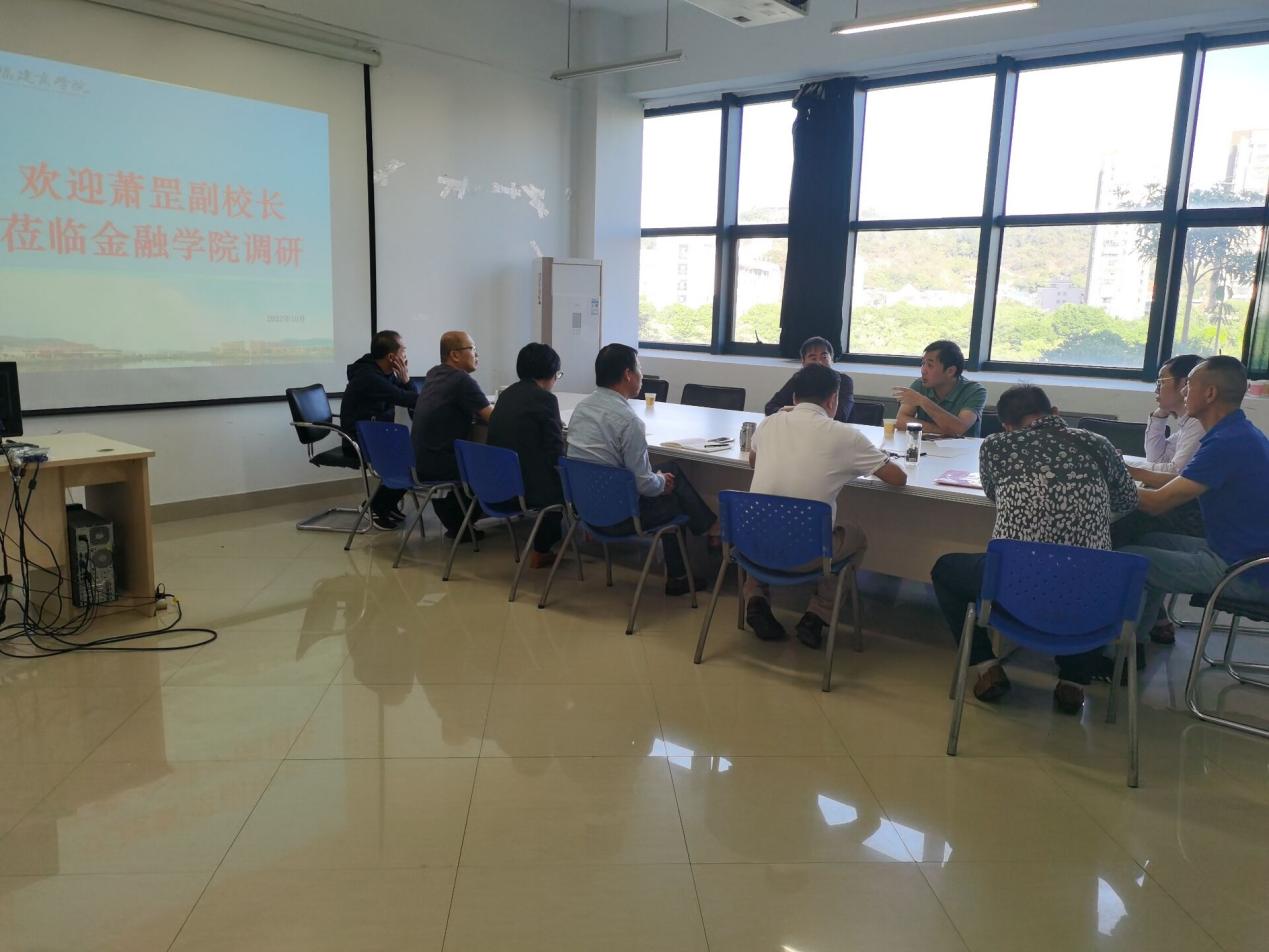 10月11日下午,副校长萧罡深入金融学院调研指导实验室建设管理工作,实验实训中心负责人陪同调研,学院班子成员及系主任参加会议。