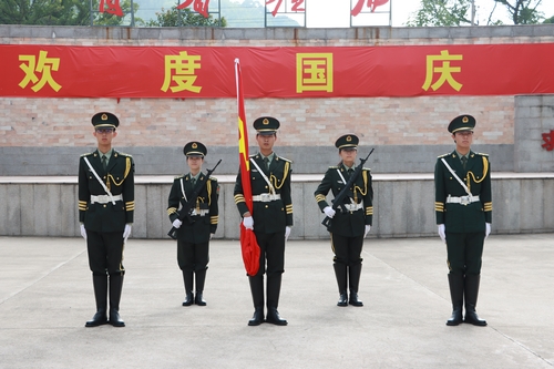 上午8时整,主持人宣布升国旗仪式开始,伴着蓬勃的朝阳,英姿飒爽的国旗护卫队队员护送国旗庄严地走向升旗台,鲜艳的五星红旗在激昂雄壮的国歌声中冉冉升起、迎风飘扬,全体师生肃立注目,齐唱国歌,向新中国成立73周年献礼。