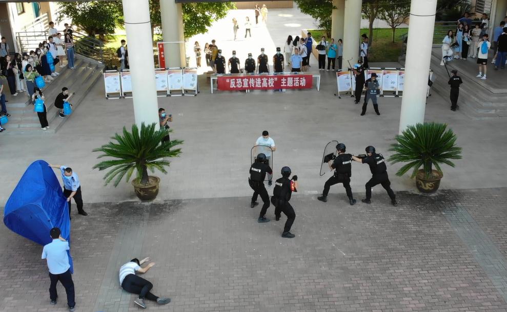 为进一步做好反恐宣传教育工作,提高永利官网广大学生识恐、防恐、反恐的意识和能力,9月21日上午,永利官网联合连江县公安分局巡特警反恐大队到校开展“反恐宣传进高校”主题活动。