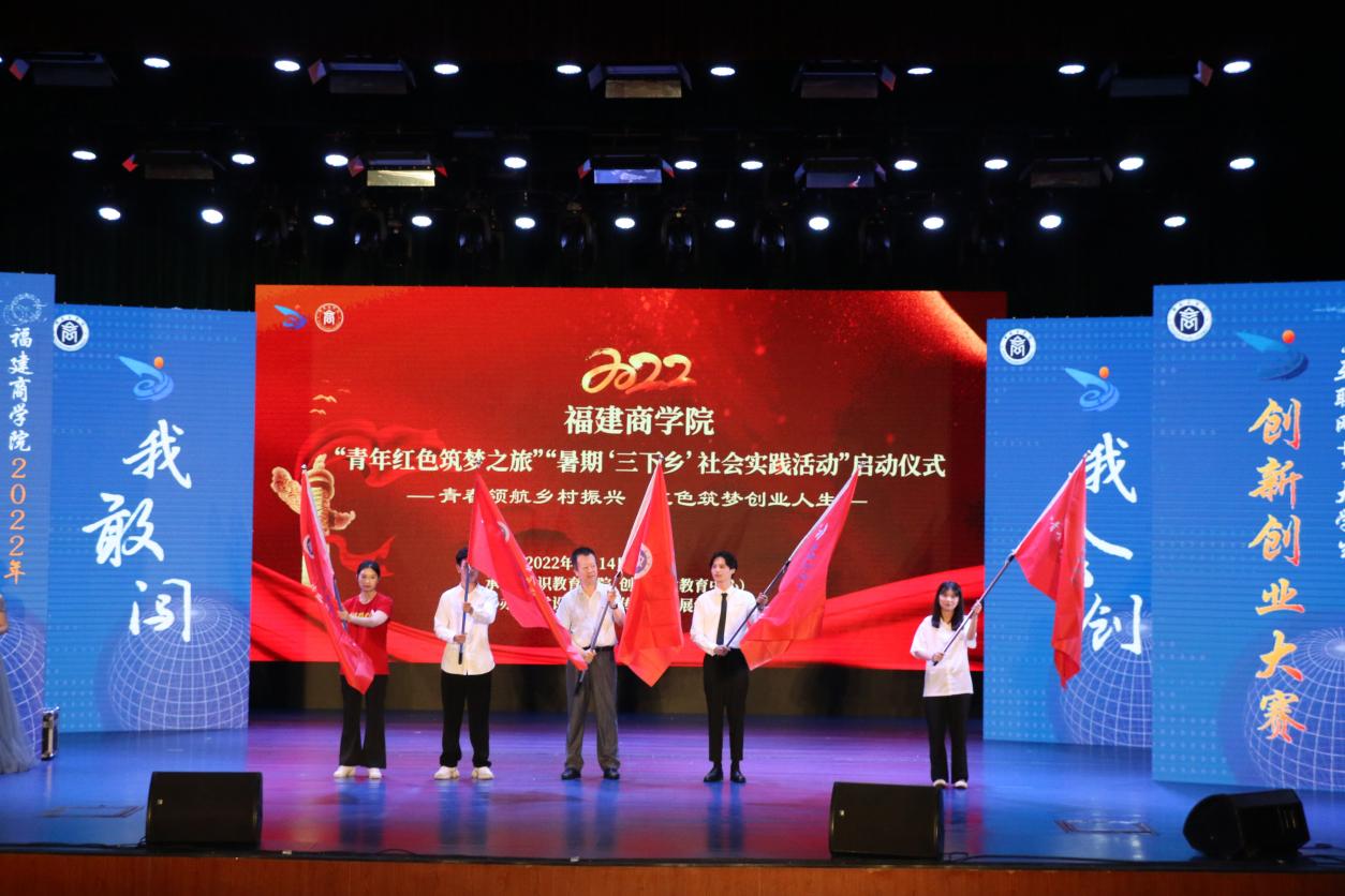 6月14日下午,永利官网2022年“互联网+”大学生创新创业大赛颁奖典礼暨“青年红色筑梦之旅”“暑期‘三下乡’社会实践活动”启动仪式在连江校区学生活动中心隆重举行。校领导刘剑津、程灵、徐晓丹、杨晓翔,各二级学院党政负责人、团委负责人,校内外创新创业导师、参赛项目成员等参加活动。