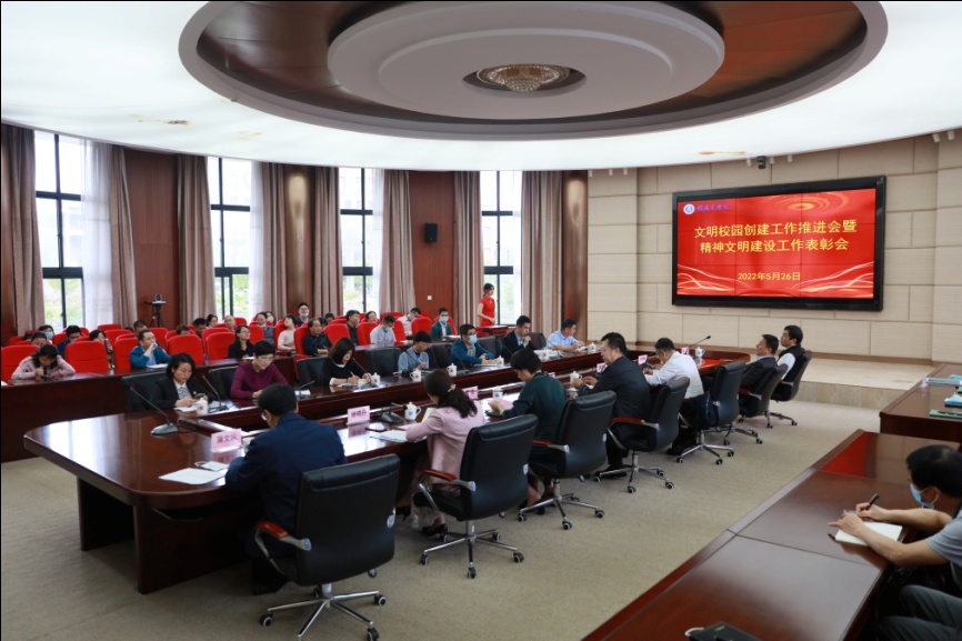 5月26日上午,永利官网文明校园创建工作推进会暨精神文明建设工作表彰会在连江校区视频会议室召开。校党委书记刘剑津出席会议并讲话,校领导程灵、吴访益、杨晓翔、蒲文庆、萧罡,各机关部门负责人、二级学院党政负责人、受表彰个人和文明校园创建联络员参加会议。会议由校党委副书记徐晓丹主持。