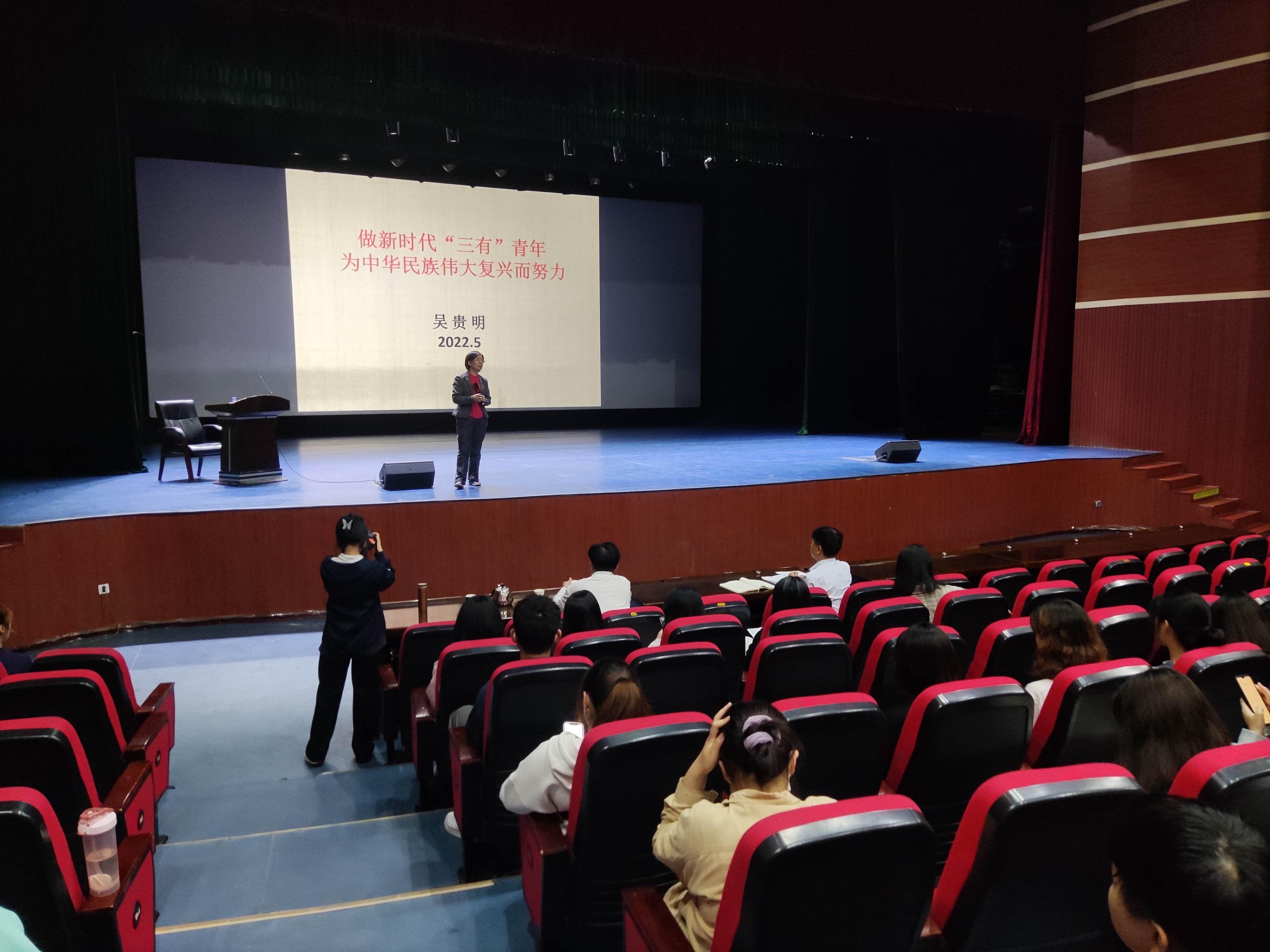 吴贵明教授引用习近平总书记在庆祝中国共产主义青年团成立100周年大会上的重要讲话对讲座的主题进行了阐述,勉励同学们要做有理想、有本领、有担当的“三有”青年,在实现民族复兴的赛道上奋勇争先。她希望同学们要多读有深度有思想的书籍,做好职业生涯规划,确立人生的方向,从现在开始培养职业能力。吴贵明教授从自我认知、思维方式、知识技能和语言行为四个层面,向同学们介绍了在职业生涯中应如何学习为人之道、生活常识、学科知识和生存本领,不断在职业生涯中丰富完善自己。