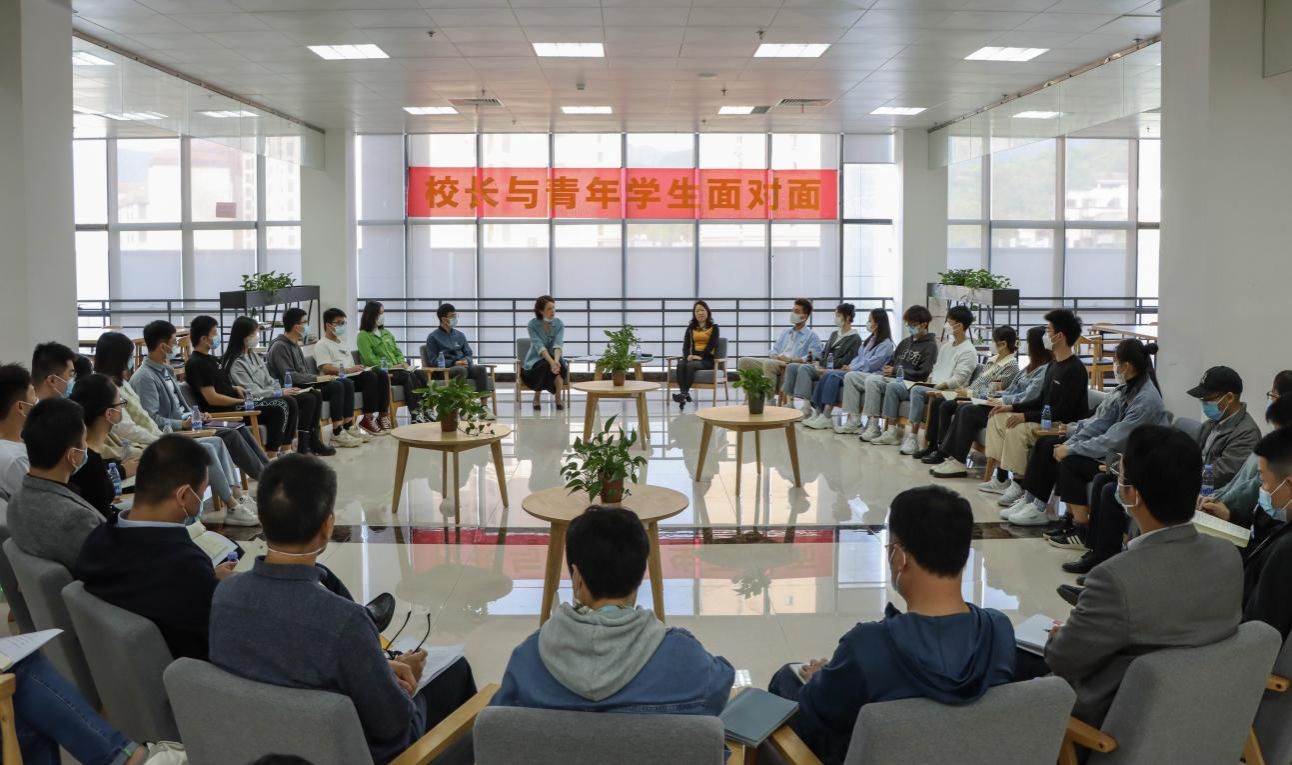 4月21日上午,永利官网在连江校区图书馆举办“共话成长 共谋发展”校长与青年学生面对面活动。校长程灵与青年学生代表面对面,倾听学生心声,共话学生成长,共谋学校发展。校党委副书记徐晓丹主持活动。