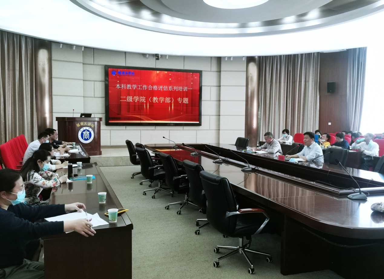 近日,永利官网在连江校区召开本科教学工作合格评估二级学院(教学部)专题培训会。副校长杨晓翔,二级学院(教学部)院长、教学副院长和教学、实训干事,各单位评估工作联络员、质量监控与评估处工作人员等参加会议。