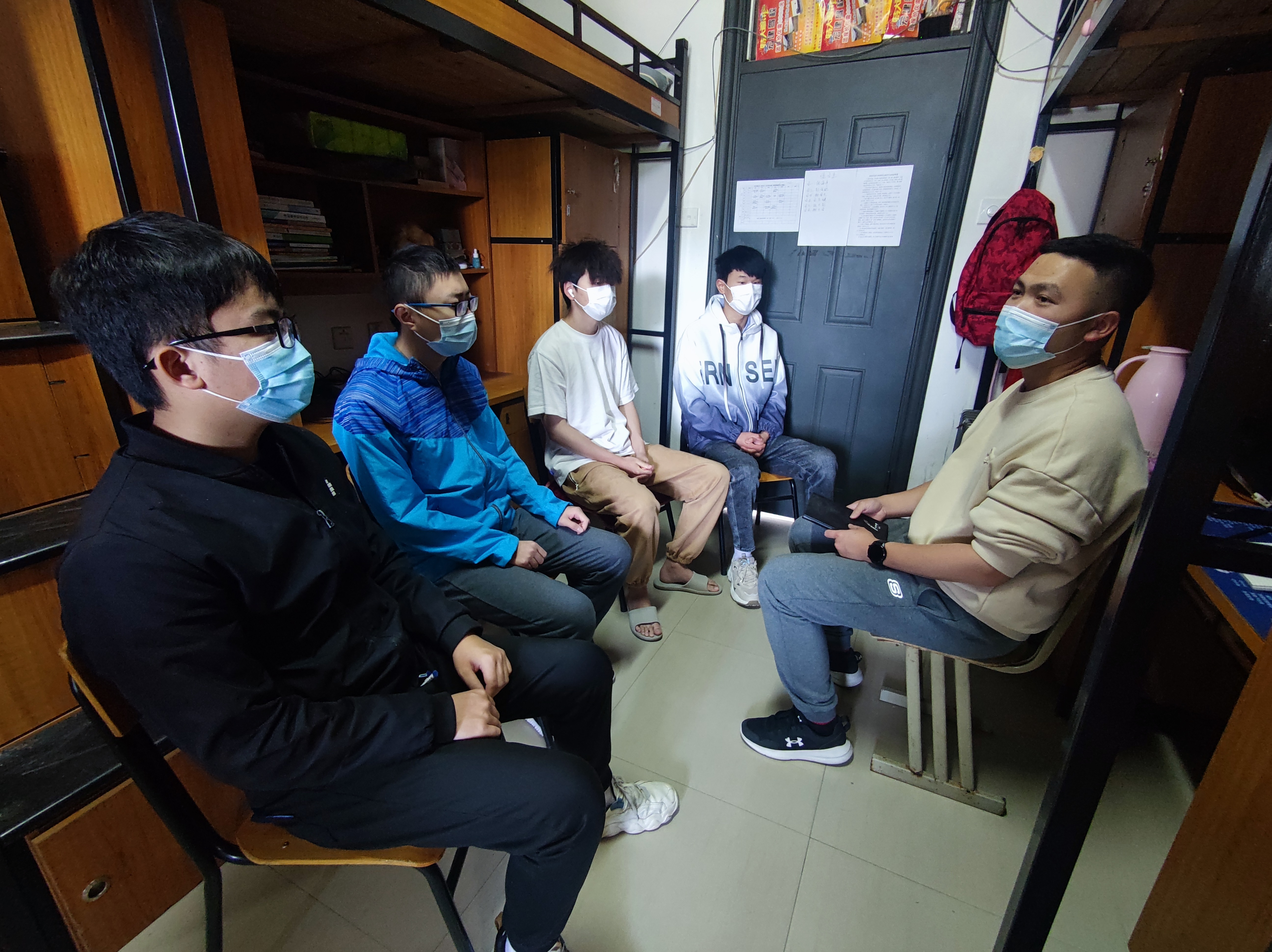 为深入学习贯彻习近平总书记关于疫情防控工作的重要指示精神,4月9日,永利官网积极组织全校师生观看省委教育工委、福建省教育厅主办的“‘疫’散花开,我们一起向未来”全省高校师生同上一堂疫情防控思政大课。师生积极响应,通过手机、电脑等观看直播课程,辅导员深入学生宿舍与学生共同学习讨论。