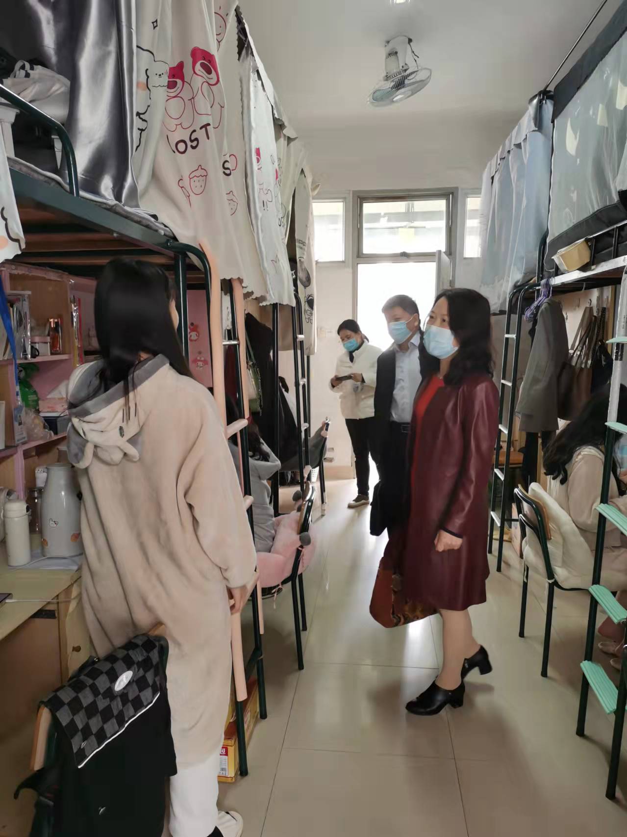 在学生宿舍,徐晓丹亲切询问了学生们近期学习、生活等方面的情况,要求同学们积极配合学校做好疫情防控工作,保持宿舍内务整洁,定期开门开窗通风,做好自身防护。徐晓丹鼓励学生们要保持积极乐观的心态,珍惜时间,勤奋学习。