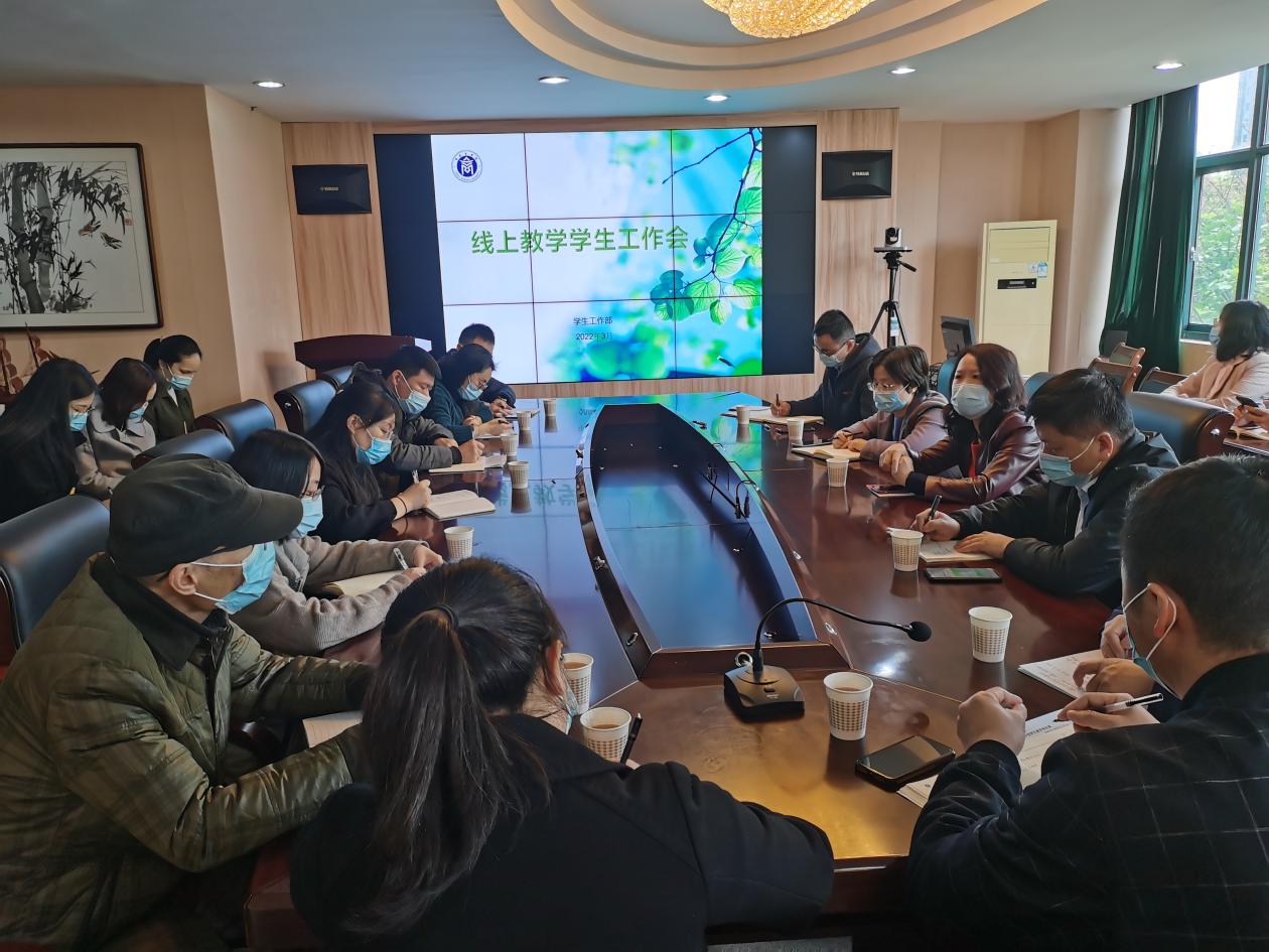 在随后召开的线上教学学生工作会议上,徐晓丹指出,当前学生线上学习出勤率高,学习认真,总体效果良好,但仍存在个别无课的学生睡懒觉、作息不规律等问题。徐晓丹传达了全省教育系统疫情防控工作视频会议精神,各二级学院党委副书记和部分辅导员作了交流发言。徐晓丹对全体学工队伍提出了三点要求:一要提高站位,坚持把学生健康和安定稳定放在首位,落实落细各项防控措施。二要关口前移,保持“战时状态”,要清醒认识到疫情防控是对工作的一次“大考”,要深入一线耐心细致地做好学生服务和疏导工作。三要从严从实,认真履行岗位职责,严格落实值班制度,坚决守住校园疫情防控底线。