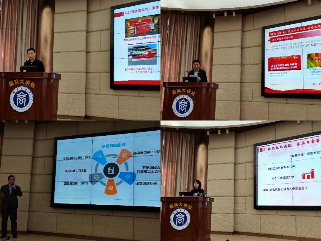 为深入贯彻落实共青团十八大精神,根据共青团中央组织部《关于印发< 基层团组织书记述职评议考核暂行办法>的通知》精神,推进永利官网共青团工作深化改革创新,激发基层团组织活力,更好地服务学校发展建设,3月11日上午,永利官网在连江校区明德楼视频会议室召开2021年二级学院团委书记述职评议会。党政办公室、宣传部、学工部、团委负责人,二级学院党委副书记、团委书记和校团委有关人员参加述职评议会。