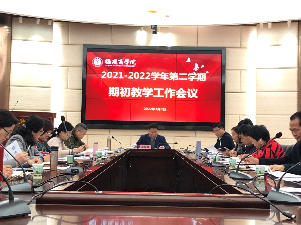 近日,2021—2022学年第二学期期初教学工作会议在连江校区明德楼视频会议室召开。会议由副校长杨晓翔主持,教务处、质量监控与评估处、实验实训中心负责人,各二级学院院长、分管教学副院长和教学实训干事参加会议。