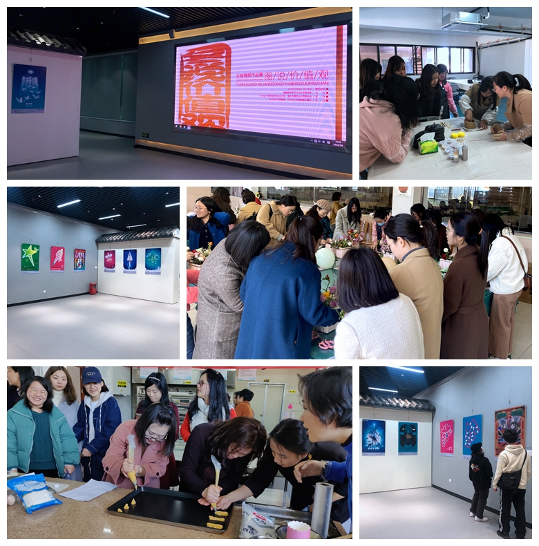 3月8日,在“三八”国际劳动妇女节来临之际,校工会组织广大女教职工参观“图说价值观”公益海报设计展,开展“书香三八”读书活动和“情系女职工 法在你身边”普法答题活动,同时,还举办了插花、烘焙、陶艺等系列纪念“三八”国际劳动妇女节活动,向全体女教职工送上节日的祝福,对在各自岗位上敬业奉献、拼搏进取,以实际行动争做伟大事业的建设者、文明风尚的倡导者、敢于追梦的奋斗者,尽展巾帼风采的女教职工致以深深敬意。校长程灵、校党委副书记吴访益、副校长杨晓翔、副校长康文杰以及全校女教职工参加了活动。