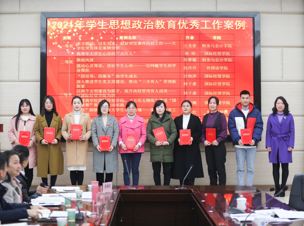 校长程灵宣读了学生工作先进集体、2020-2021学年优秀辅导员、2021年学生思想政治教育优秀工作案例获奖名单,并为优秀辅导员颁奖。