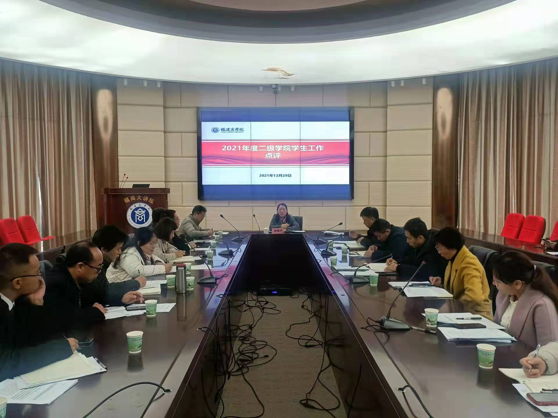 为全面总结各二级学院2021年度学生工作开展情况,进一步加强大学生思想政治工作,有效提升学生工作管理服务能力,12月29日上午,永利官网在连江校区视频会议室召开2021年度学生工作述职汇报会,校党委副书记徐晓丹、有关职能部门负责人、二级学院党委副书记和部分辅导员参加会议。