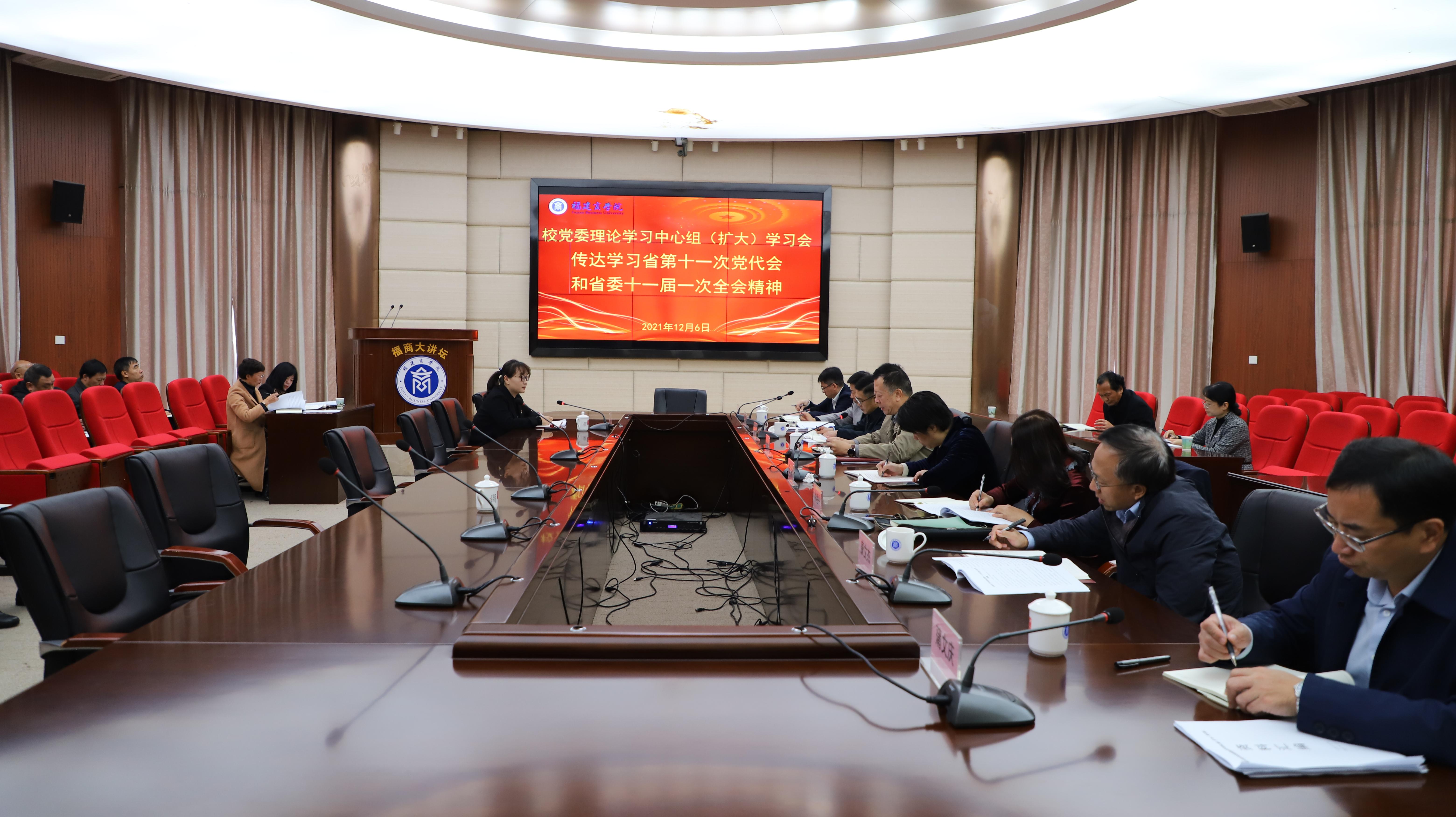 12月6日上午,永利官网召开党委理论学习中心组(扩大)学习会。会上,永利官网出席省第十一次党代会的代表黄玮副教授传达学习省第十一次党代会精神,校党委书记刘剑津传达学习省委十一届一次全会精神,并对学校学习贯彻省第十一次党代会和省委十一届一次全会精神各项工作进行部署。校领导程灵、吴访益、徐晓丹、杨晓翔、康文杰、黄身勇、蒲文庆出席会议,各部处(室、中心)负责人、各二级学院党政主要负责人列席学习会。