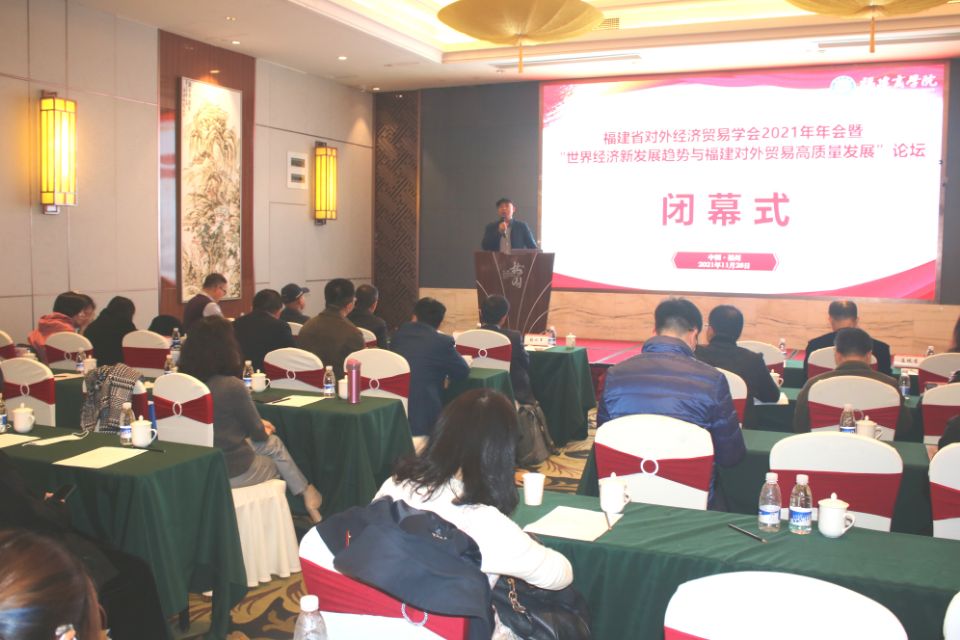 近日,福建省对外经济贸易学会2021年年会暨“世界经济新发展趋势与福建对外贸易高质量发展”论坛在福州光明港梅园国际大酒店举办。本次论坛由福建省对外经济贸易学会主办,国际经贸学院承办。副校长杨晓翔、福建省贸促会副会长杨立云、福建省对外经济贸易学会会长彭水军,以及省内20多所高校和科研单位的国际经济与贸易相关领域的专家学者和代表出席会议,会议由福建省对外经济贸易学会秘书长、厦门大学经济学院教授陈勇兵主持。