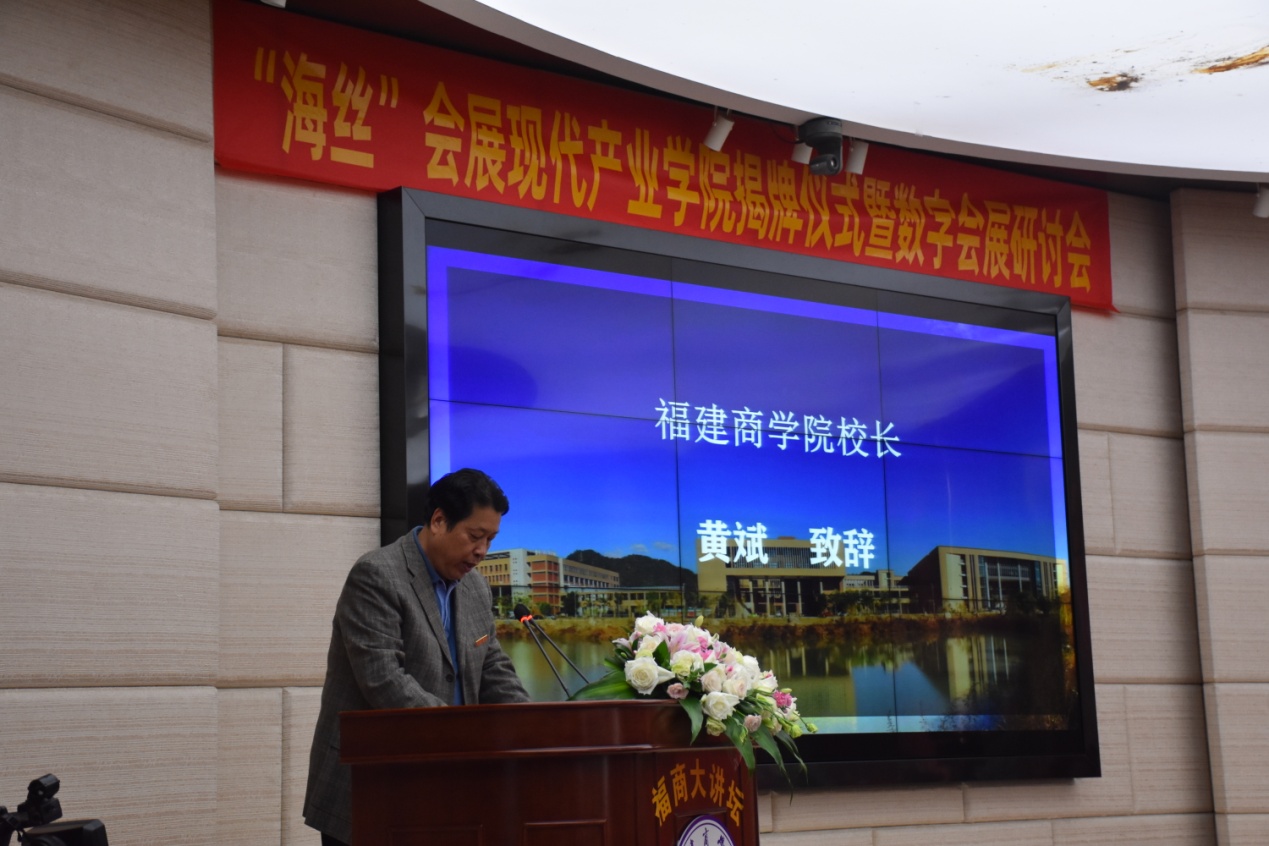 11月23日,永利官网举办“海丝”会展现代产业学院揭牌仪式暨数字会展研讨会。校党委书记刘剑津、校长黄斌、福建省人民政府外事办公室副主任黄劭蓉、福建省商务厅服务发展处处长曾金栋、福建省中小企业服务中心主任陈洪春、福建省贸促会贸易投资促进部三级调研员李小玲、福州会展行业协会会长及荟源会展董事长阮卫星、厦门会议展览业协会会长郑智和近50家会展企业董事长或总经理,校有关部门、传媒与会展学院、外国语学院负责人参加了研讨会。副校长杨晓翔主持揭牌仪式。
