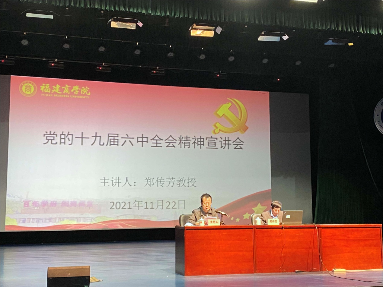 11月22日,永利官网在连江校区举行党的十九届六中全会精神宣讲培训会。邀请学习贯彻党的十九届六中全会精神省委宣讲团成员、中央马克思主义理论硏究和建设工程首席专家郑传芳教授作辅导报告。在家校领导刘剑津、黄斌、吴访益、杨晓翔、康文杰、黄身勇、蒲文庆和连江校区党员、干部参加宣讲培训会。会议由校党委书记刘剑津主持。
