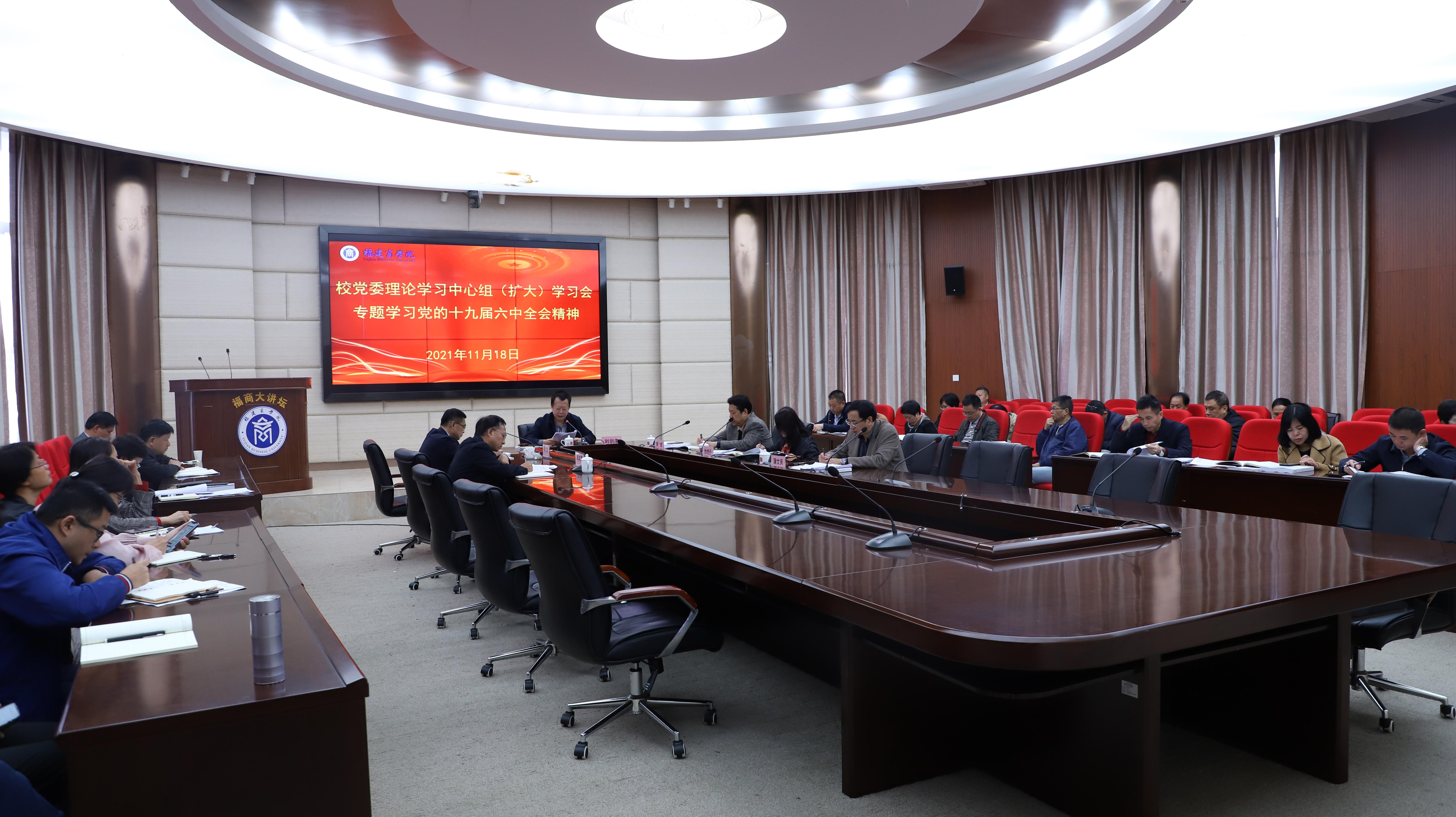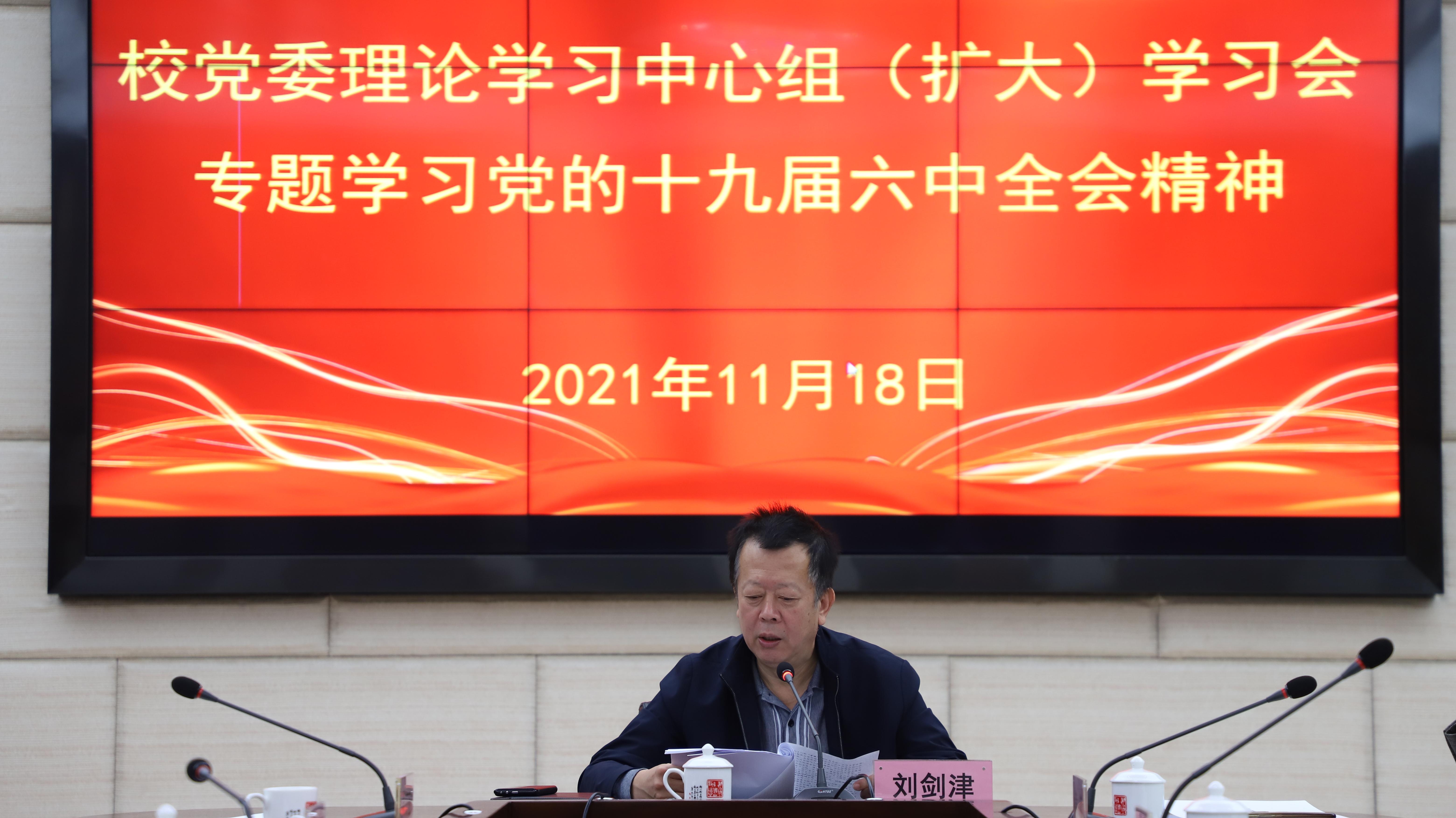 11月18日上午,永利官网召开党委理论学习中心组(扩大)学习会,专题学习党的十九届六中全会精神,认真贯彻11月13日省委常委会(扩大)会议要求,并对学校学习贯彻党的十九届六中全会精神各项工作进行部署。校党委书记刘剑津主持会议并作主题发言,校领导黄斌、吴访益、徐晓丹、康文杰、蒲文庆出席会议,各部处(室、中心)负责人、各二级学院党政主要负责人列席学习会。