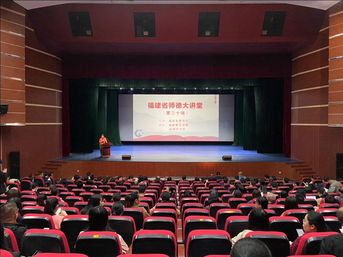 为深入贯彻《中共中央 国务院关于全面深化新时代教师队伍建设改革的意见》、教育部等七部门《关于加强和改进新时代师德师风建设的意见》,认真实施《全省教育系统师德专题教育实施方案》,切实提升广大教师政治素养和师德涵养,根据省教育厅统一安排,11月2日,由省教育厅主办,永利官网和福建教育学院联合承办的福建省师德大讲堂(第三十场)在永利官网学生活动中心开讲。福建省委党校(福建行政学院)林怡教授应邀来校开展主题为《春风化雨 立德树人——新时代师德建设与使命担当》的师德教育专题讲座。