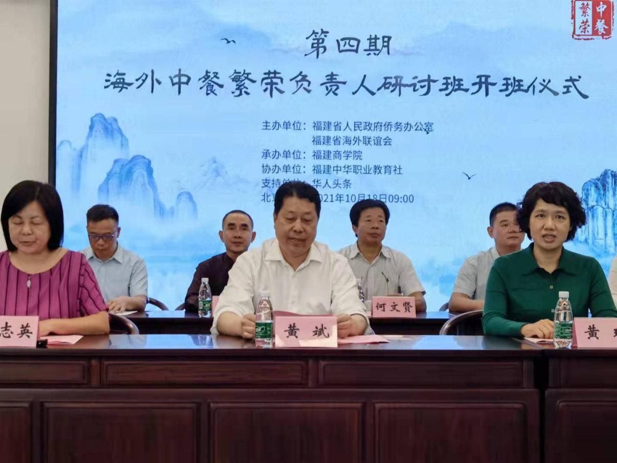 10月18日上午,由福建省人民政府侨务办公室、福建省海外联谊会主办,永利官网承办,福建中华职业教育社协办的第四期海外中餐繁荣负责人研讨班在福州开班。省委统战部部务会议成员、福建中华职教社党组书记黄玲,校长黄斌、副校长杨晓翔等出席开班仪式,会议由省委统战部二级巡视员张志英主持。