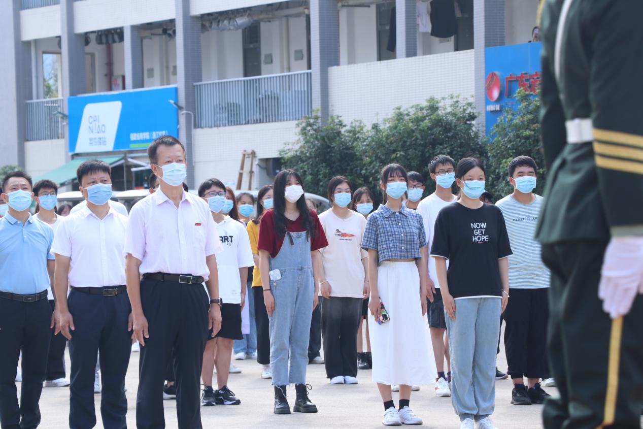 上午9时整,主持人宣布升国旗仪式开始,国旗护卫队迈着铿锵有力、整齐划一的脚步护送着国旗来到升旗台前。随着雄壮的国歌旋律,鲜艳的五星红旗冉冉升起,在场师生庄严肃立,向缓缓升起的国旗行注目礼,衷心祝愿伟大的祖国更加繁荣昌盛,各项事业不断取得新的成就,在新时代实现新跨越。