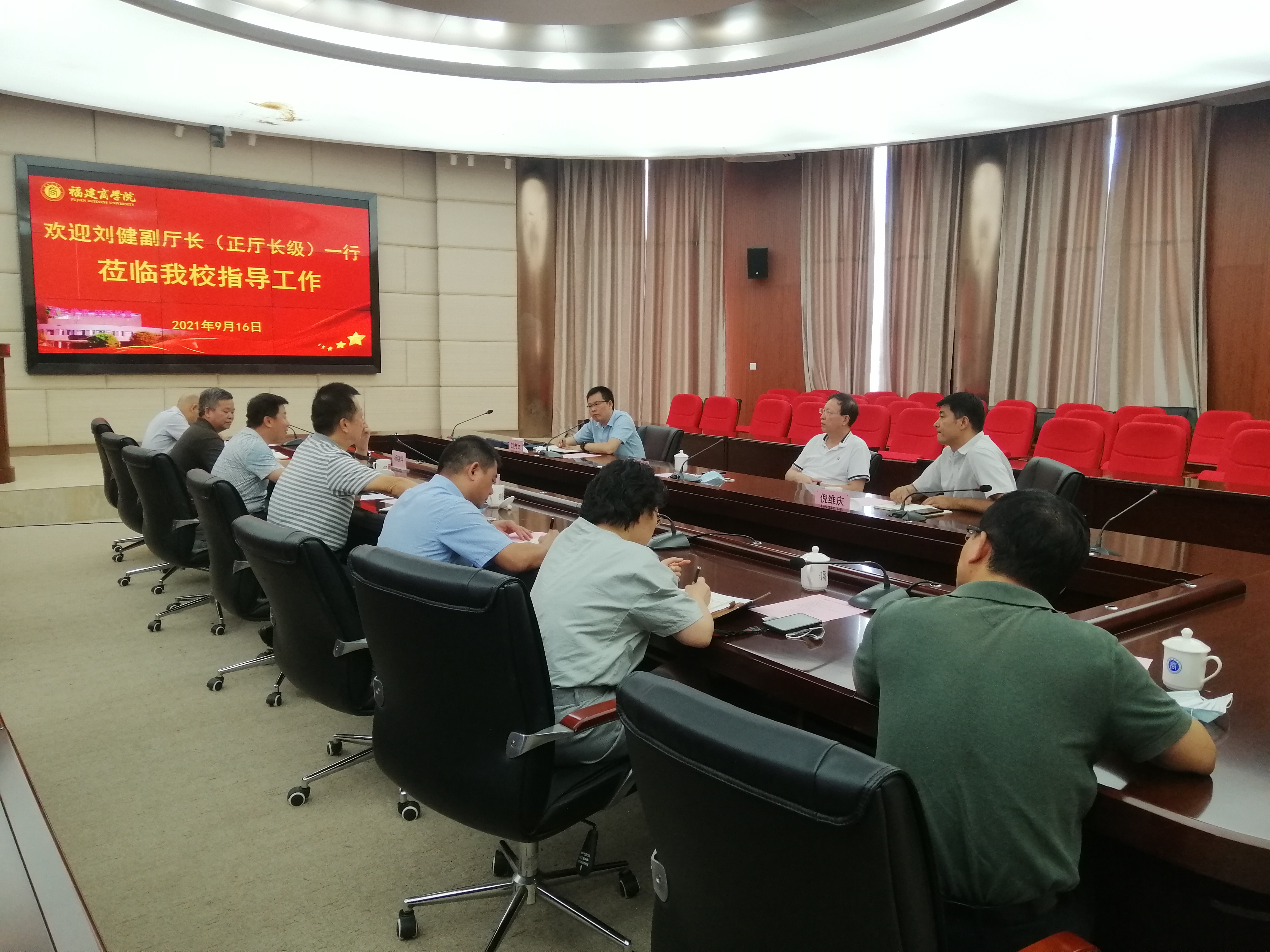 9月16日上午,省教育厅副厅长(正厅长级)刘健,高教处副处长倪维庆、评估中心副主任刘典文一行莅临永利官网调研指导本科教学合格评估和疫情防控工作情况。校党委书记刘剑津、副校长杨晓翔以及相关部门负责人参加座谈。