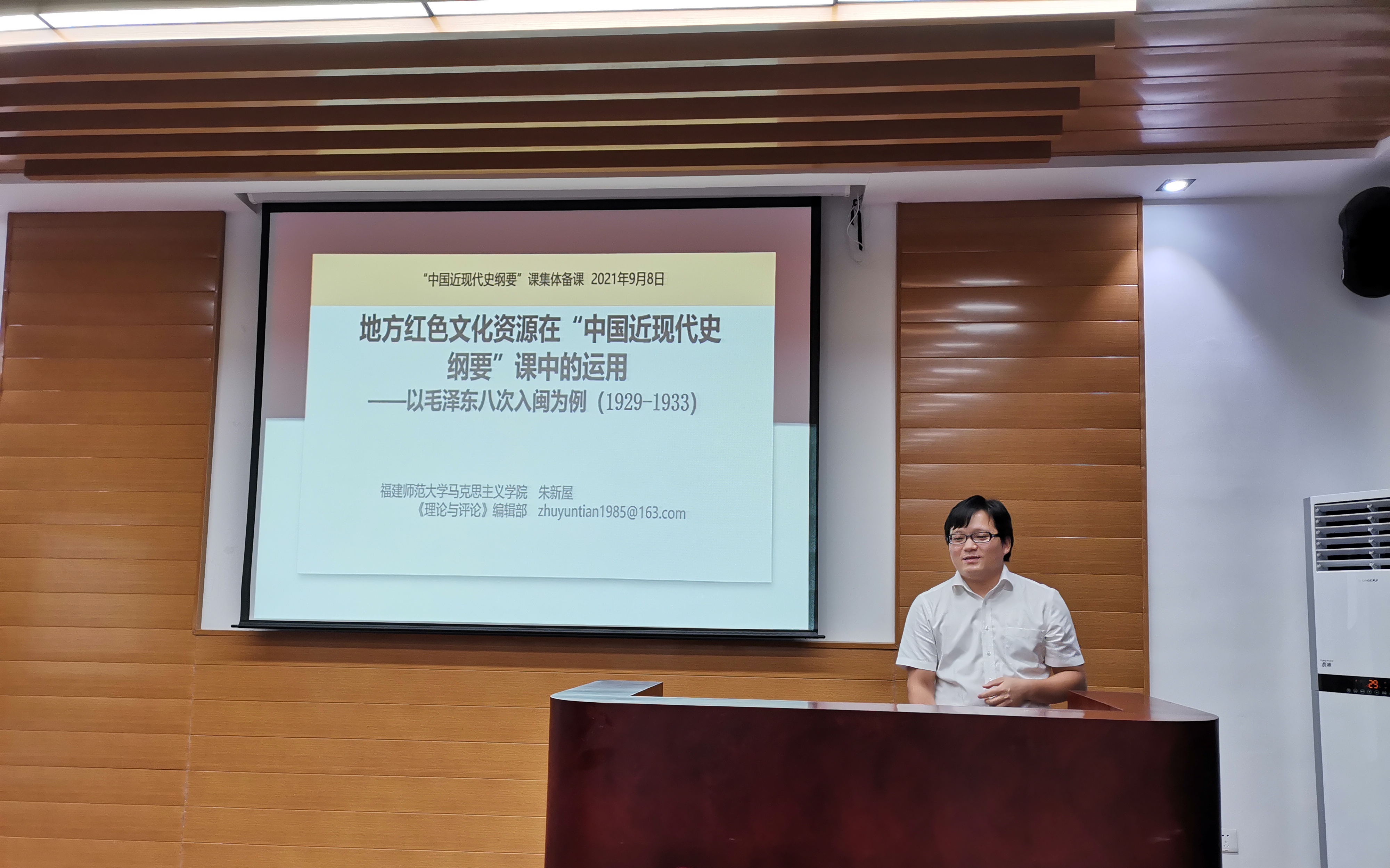 9月8日下午,党史学习教育省委宣讲团成员、福建师范大学朱新屋副教授应邀到永利官网作题为“地方红色文化资源在‘中国近现代史纲要’课中的运用——以毛泽东八次入闽为例(1929-1933)”的示范教学。校党委副书记吴访益和马克思主义学院教师参加学习。