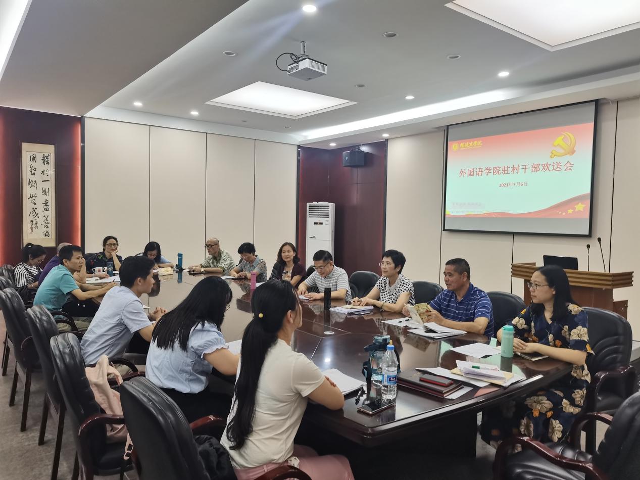 7月6日下午,外国语学院在鼓楼校区党政会议室举行驻村干部欢送会。校党委副书记吴访益到会讲话,校党委组织部负责人、学院党政班子成员、驻村干部陈民强老师以及学院教师党员代表参加欢送会。