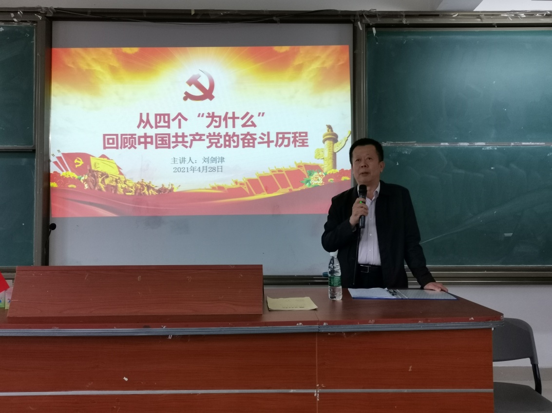 校党委书记刘剑津分别为2020级酒店管理和审计学学生讲授了题为《从四个‘为什么’回顾中国共产党的奋斗历程》的思政课。课堂中,刘剑津用丰富生动的史料和例证,分析阐述了中国共产党为什么能够建立新中国,为什么能建设好新中国,为什么能够得到人民的支持及为什么能取得现代化建设的巨大成就。他鼓励青年学子要用好学校所在地的党史资源,利用课余时间到红色革命纪念地多走、多看、多学,在学习、实践中加深对百年党史的认识和理解,坚持和传承中国共产党的优秀品格、革命精神,实现内化于心、外化于行,自觉担当起全面建设社会主义现代化国家的重任。