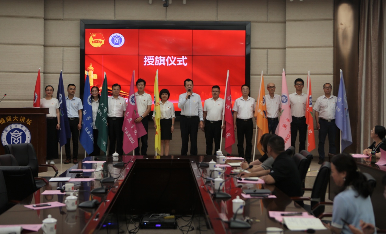 校党委书记刘剑津为各单位代表授旗