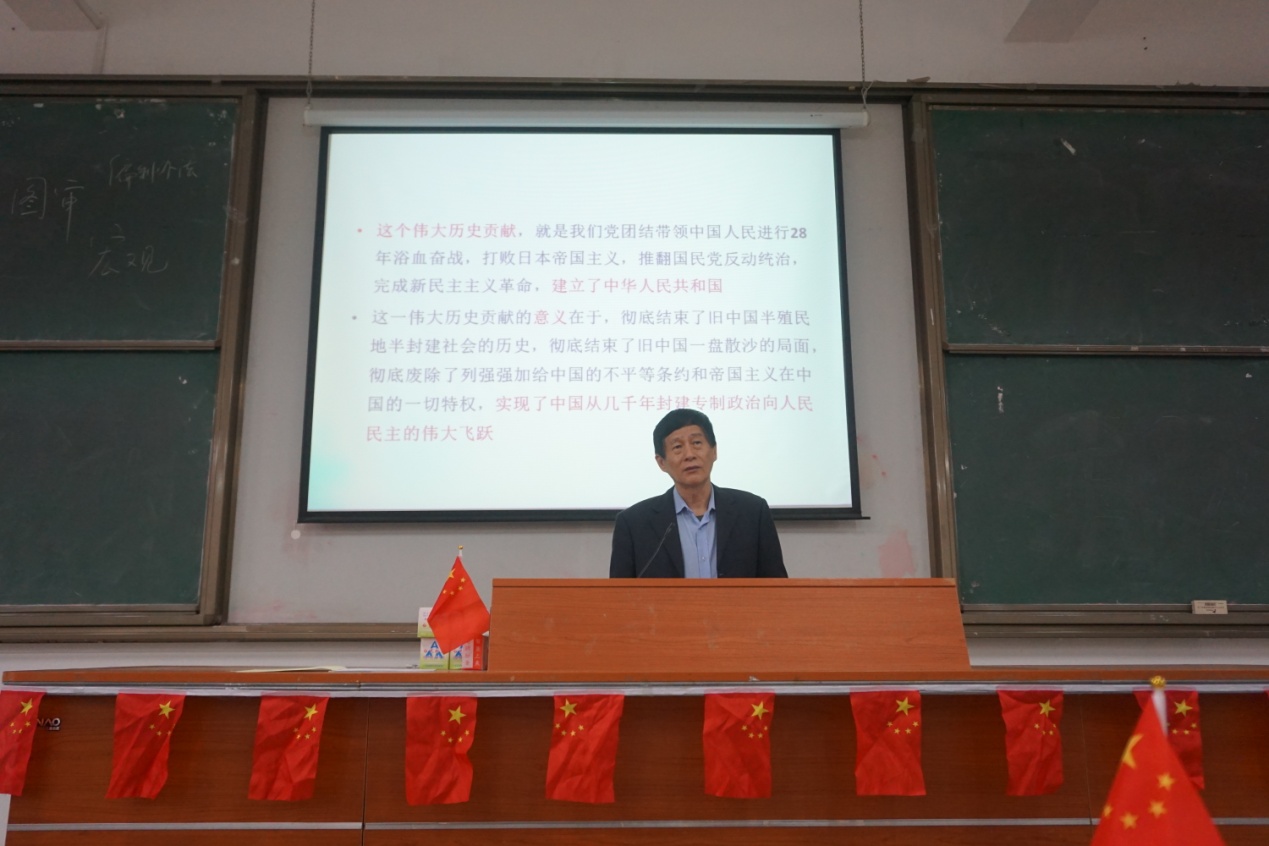 4月7日下午,永利官网举办党史学习教育宣讲暨干部学习培训报告会。党史学习教育省委宣讲团成员、中央马克思主义理论研究和建设工程首席专家、福建师范大学教授郑传芳应邀莅临永利官网作了题为《中国共产党百年奋斗的光辉历程和宝贵经验》的宣讲报告。报告会由校党委书记刘剑津主持,学校领导班子成员、科级以上干部、马克思主义学院教师以及校习近平新时代中国特色社会主义思想读书社学生参加学习。