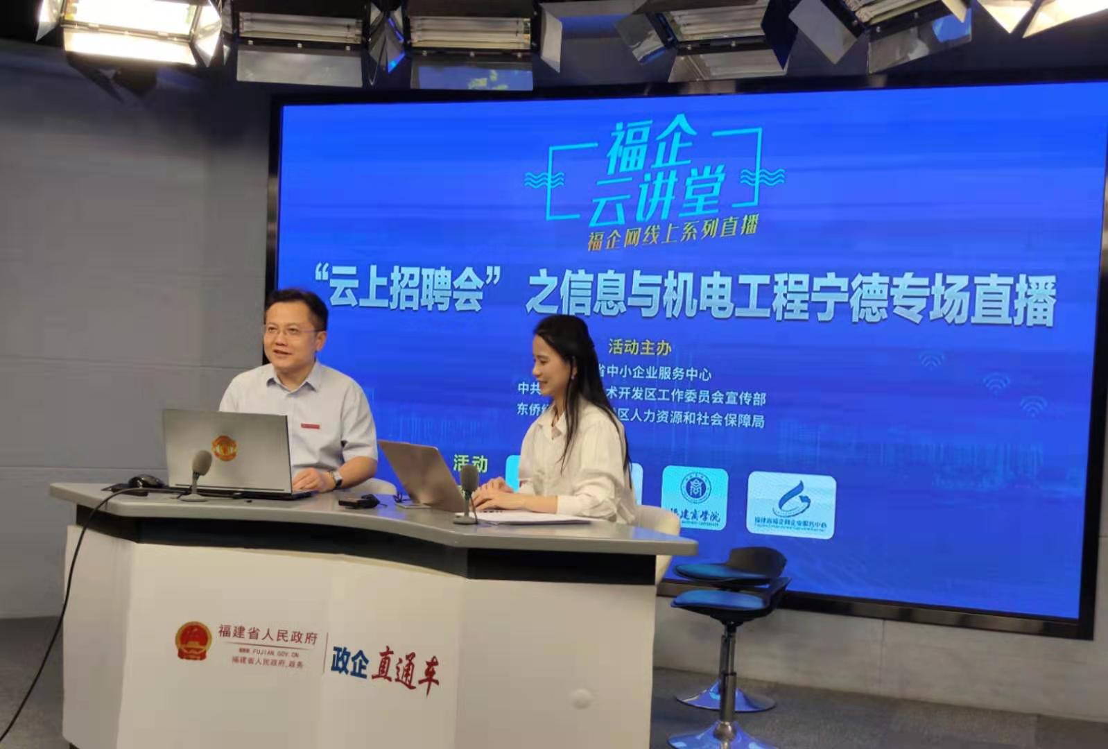 3月30日,由福建省中小企业服务中心、中共东侨经济技术开发区工作委员会宣传部、东侨经济技术开发区人力资源和社会保障局主办,由永利官网工商管理学院、福商HR专业校友企业麦芒(福建)人力资源服务有限公司、福建青年人才开发中心、福建省福企网企业服务中心共同承办的福企“云讲堂”系列直播活动第十三期——“云上招聘会”之信息与机电工程宁德专场在福建中小企业服务中心直播间顺利完成播出。