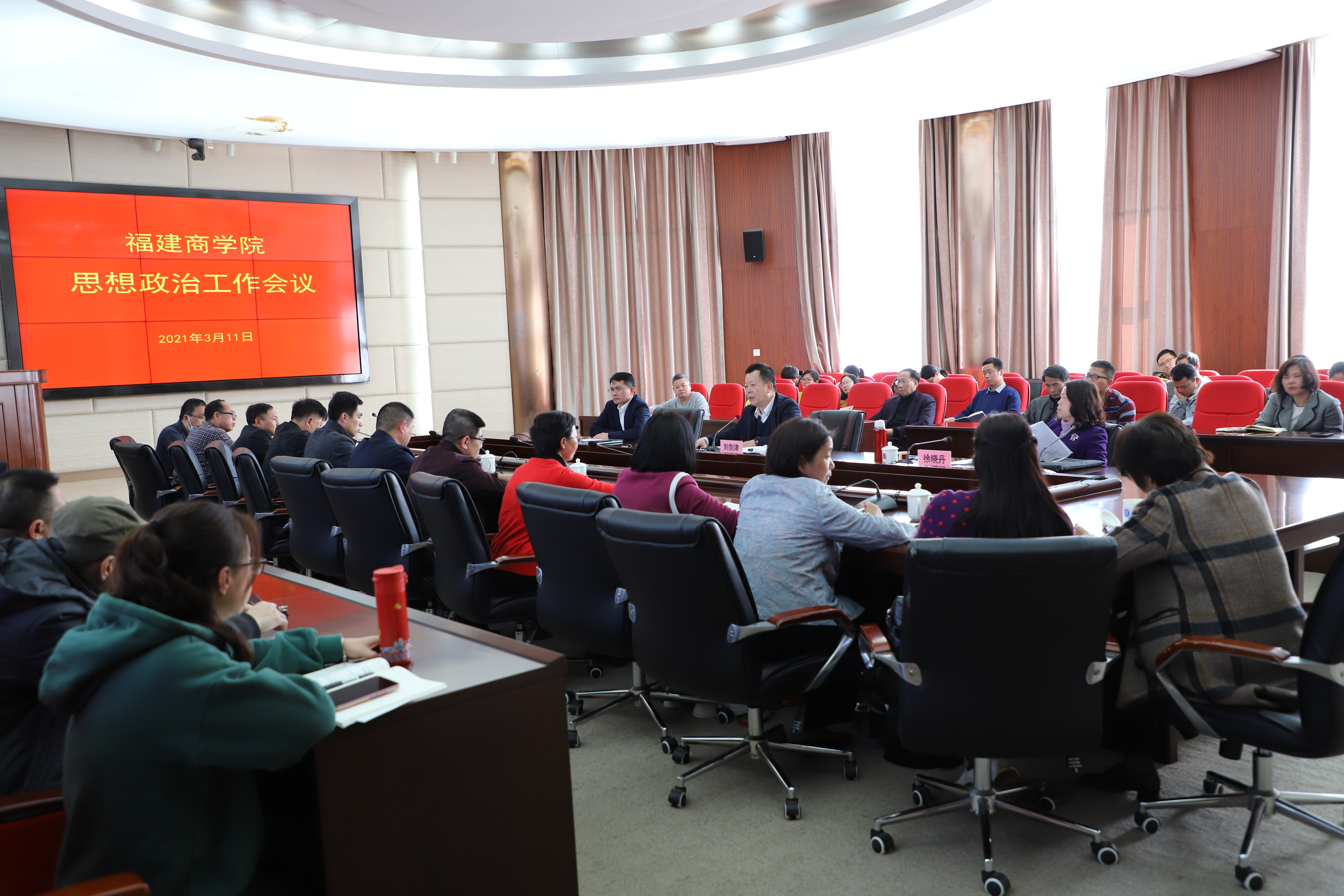 3月11日下午,永利官网在连江校区召开思政工作会议,校领导刘剑津、徐晓丹、黄身勇,有关处室负责人,各二级学院党组织负责人、分管学生工作副书记和全体辅导员参加会议。会议由校党委副书记徐晓丹主持。