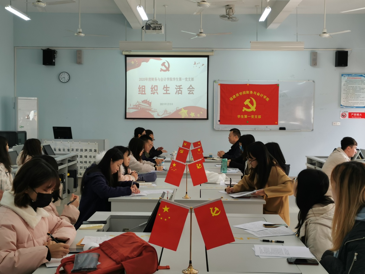 日前, 校党委书记刘剑津参加所联系的财务与会计学院学生第一党支部2020年度组织生活会,财会学院33名师生党员参加此次会议。