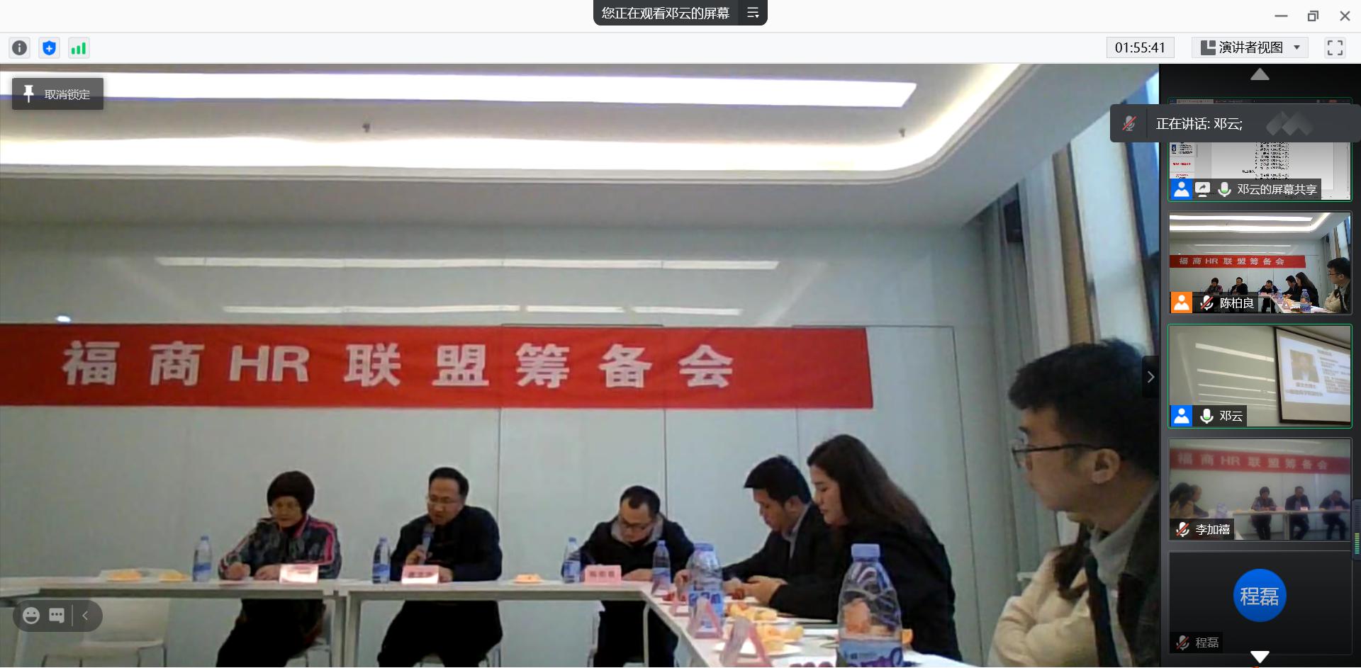 1月24日下午,工商管理学院在福州市台江区城投大厦4楼会议室举办福商HR联盟筹备会,副校长康文杰,工商管理学院有关负责同志和部分教师,原福建商业高等专科学校、原福建对外经济贸易职业技术学院人力资源管理专业部分校友代表参加线下筹备会。人力资源管理系其余老师和部分异地校友代表通过腾讯会议在线接入方式全程参加线上筹备会。