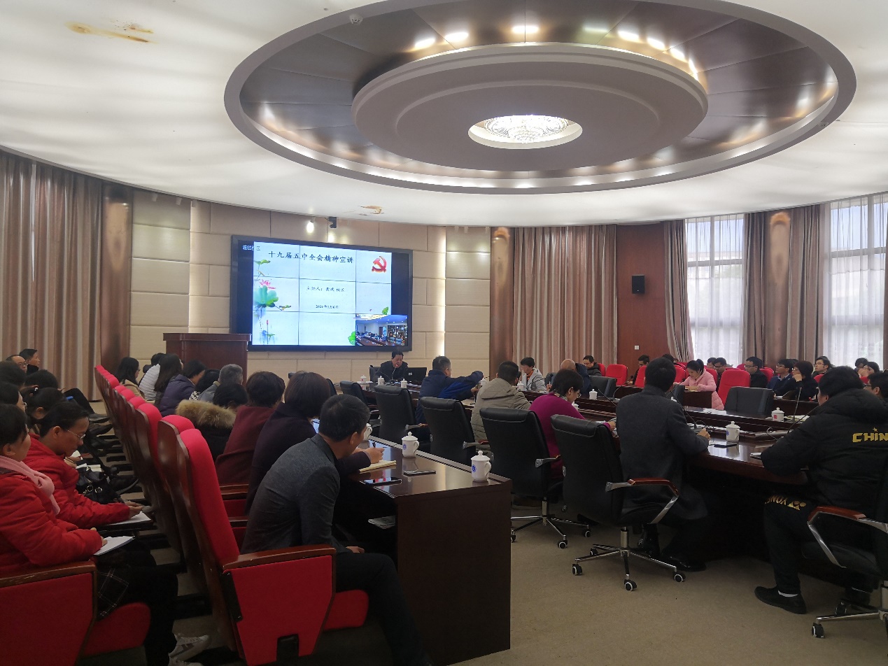 黄斌紧扣党的十九届五中全会主题,概述了党的十九届五中全会精神,从创新驱动发展角度出发,结合学校履行高校四项基本职能存在的不足以及制定学校“十四五”规划、探索教育评价的思考等方面,对党的十九届五中全会精神进行全面宣讲和深入解读。