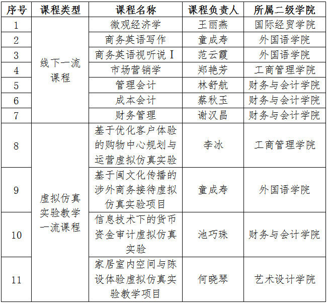 近日,福建省教育厅发布了《福建省教育厅关于公布2020年省级一流本科课程名单的通知》(闽教高〔2020〕23号),永利官网2020年申报的11门课程被认定为省级一流本科课程,其中线下一流课程7门,虚拟仿真实验教学一流课程4门。