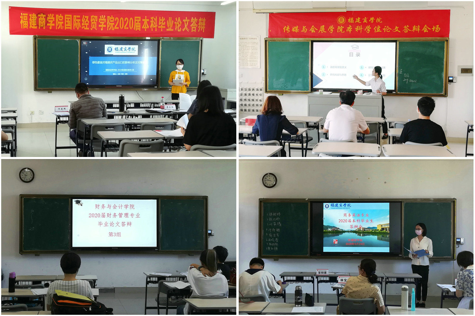 为做好首批本科生毕业论文答辩工作,教务处提前下发了《关于做好2020届本科毕业论文(设计)工作的通知》,明确工作进度和工作要求,指导各二级学院做好毕业论文(设计)工作和疫情防控相关工作。二级学院积极响应,认真制定工作方案,各项工作有条不紊。答辩会现场,各学院在入口处设置了一米线,安排工作人员对入场师生进行测体温、消毒,组织师生有序进场、离场。各专业学生精心准备,通过PPT陈述论文框架结构及核心内容,总结论文创新点。答辩小组老师现场逐一点评、提问,并针对论文中存在的主要问题提出了修改意见或建议,现场气氛热烈有序,充分展现永利官网首届本科毕业生勤奋向上的精神风貌。
