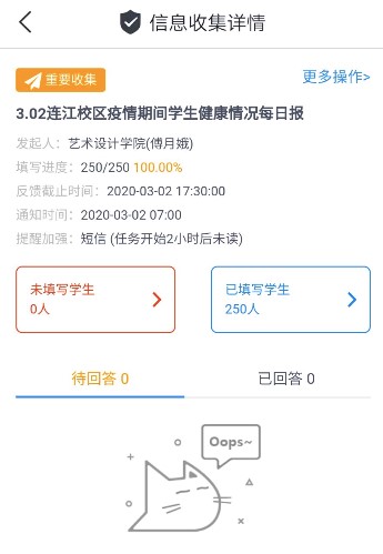辅导员们严格落实“日报告、零报告”制度,为全面掌握学生的健康状况,当起“侦查员”,做好每天“云统计”。从最初的“平安接龙”到今日校园APP的“每日一报”,辅导员每天要拨通几十上百个电话便是常态,目的就是确保数据更加精准、不漏一人。一句“我很好”,一句“都正常”,一句“您放心”,都是每天舒缓老师神经的良方、安心剂。