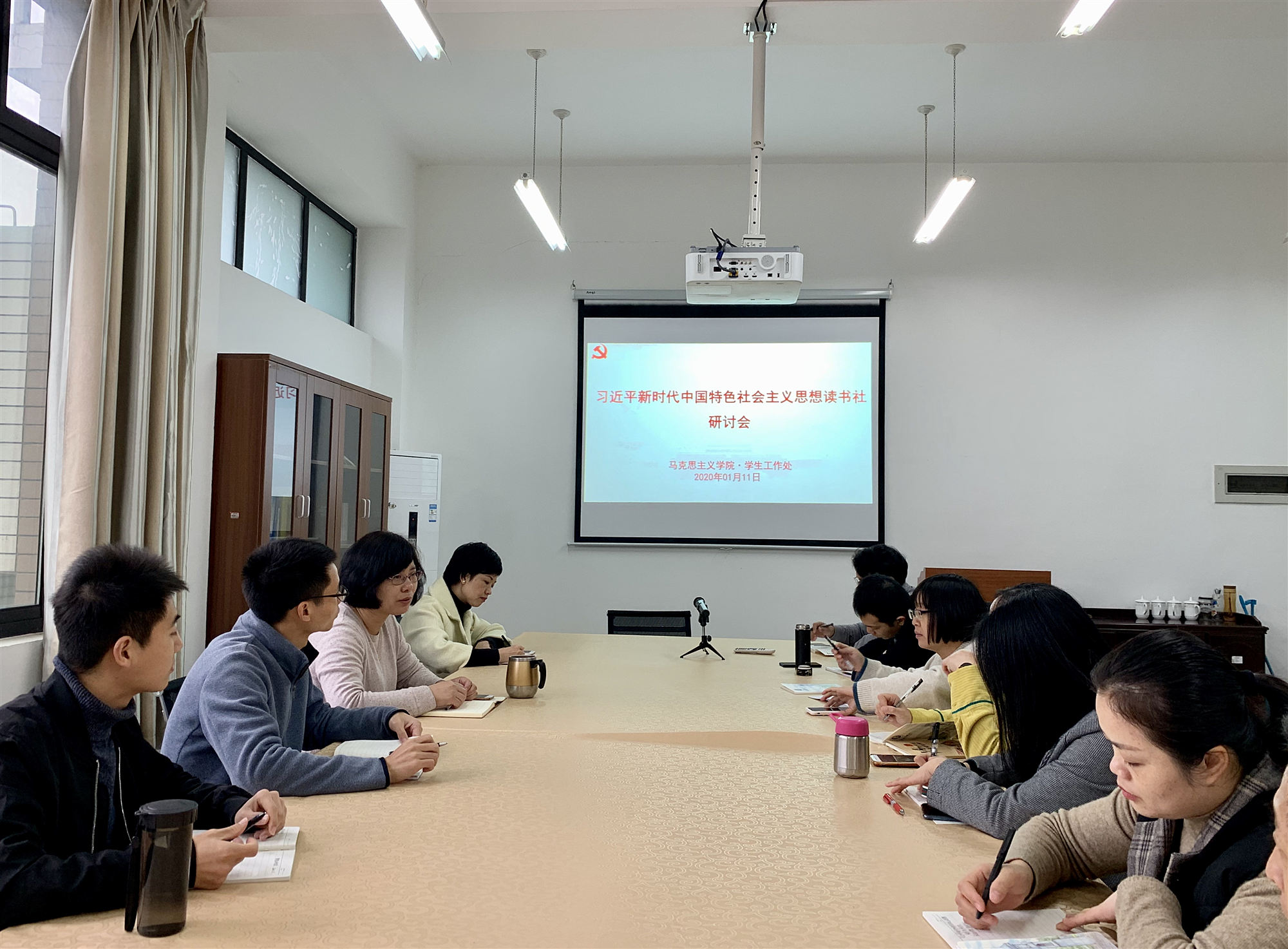 1月11日上午,学校及各学院习近平新时代中国特色社会主义思想读书社研讨会在马克思主义学院会议室召开,马克思主义学院负责人,马克思主义学院、学工处部分老师以及各学院读书社指导老师参加会议。