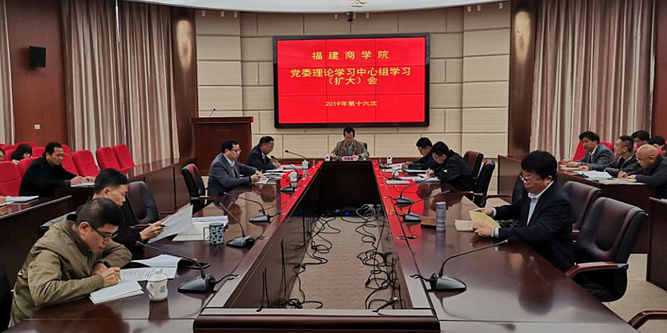12月27日,永利官网在连江校区召开2019年第十六次校党委理论学习中心组学习(扩大)会,深入学习贯彻党的十九届四中全会和习近平总书记在全会上的重要讲话精神,会议要求切实把思想和行动统一到中央决策部署和省委要求上来,扎实推动学校各项事业高质量发展。会议由校党委书记刘剑津主持,校领导吴访益、康文杰、黄身勇、蒲文庆参加会议。