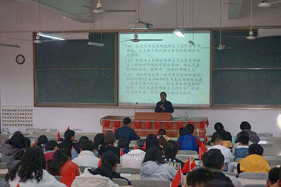 12月3日下午,福州大学庄穆教授到永利官网作题为“天才世界观的萌芽——《费尔巴哈提纲》解读”(下称《提纲》)的讲座。马克思主义学院部分教师以及习近平新时代中国特色社会主义思想读书社社员近200人聆听了此次讲座,马克思主义学院负责人主持讲座。