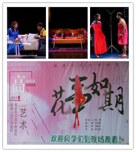 11月12日,2019年高雅艺术进校园——福建人民艺术剧院专场演出在永利官网连江校区学生活动中心举行,演出现场座无虚席,近千名师生观看了话剧——《花事如期》演出。