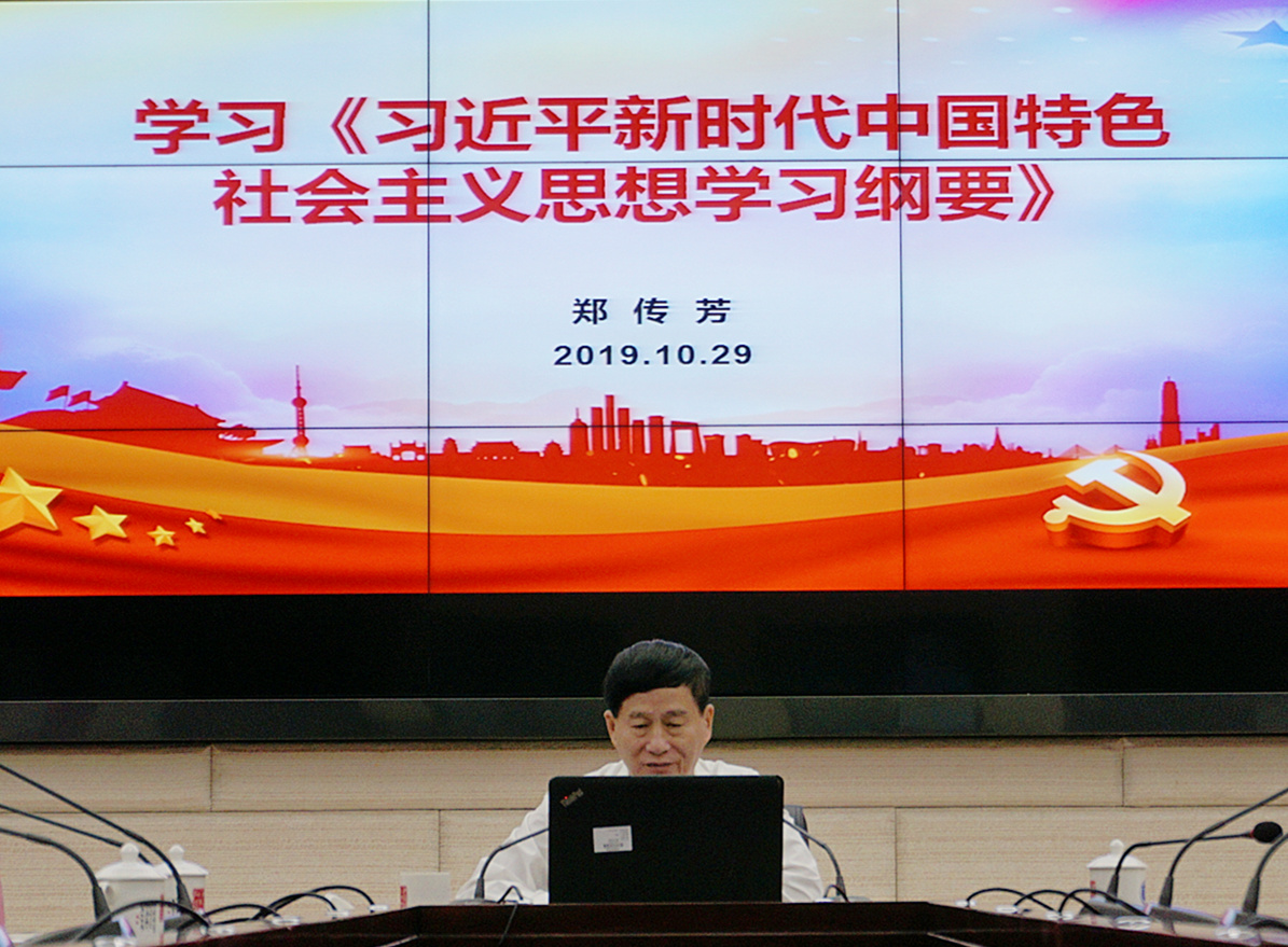 郑传芳教授从“坚持党对一切工作的领导”“全面从严治党纳入战略布局”“新时代党的建设总体布局”以及“党的理论宝库增添新的指导思想”等方面详细阐述了作为党的指导思想研究重要成果的《学习纲要》的重要性;在讲授中,郑教授系统梳理了《学习纲要》的基本框架,并从“权威性”“系统性”“辅读性”三个角度分析了《学习纲要》的特点,从“历史方位”“根本方向”“总体布局”“国家安全观”“政治保证和能力建设”等几个方面向师生解读了《学习纲要》的基本内容。