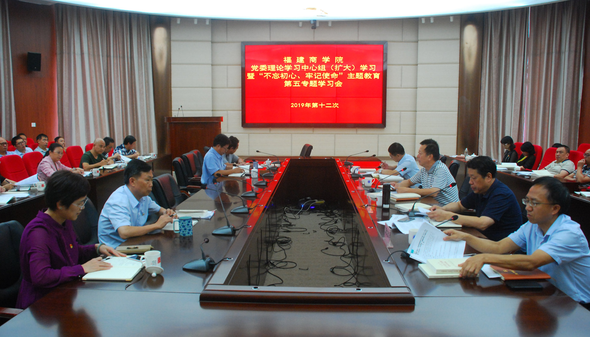 10月14日,永利官网在连江校区召开2019年第十二次校党委理论学习中心组(扩大)学习暨“不忘初心、牢记使命”主题教育专题学习会,开展主题教育第五专题集中学习研讨。校党委领导班子、部分二级学院和机关党员干部在前期充分自学的基础上,在会上围绕“主动担当作为,大力弘扬‘马上就办、真抓实干’优良作风,坚持高质量发展落实赶超,谱写新时代新福建建设新篇章”这一主题,聚焦学习贯彻习近平总书记关于“不忘初心、牢记使命”的重要论述,进行研讨交流。校“不忘初心、牢记使命”主题教育领导小组组长、校党委书记刘剑津主持会议。副校长康文杰作主题发言,校党委副书记、校长黄斌,校党委副书记吴访益出席会议。