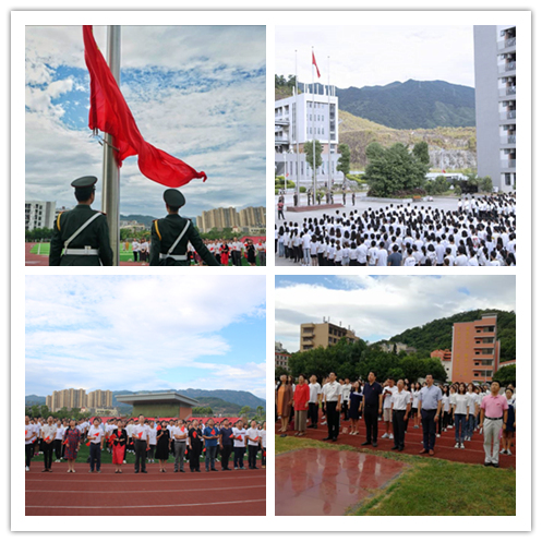 校领导刘剑津、黄斌、吴访益、康文杰、黄身勇、蒲文庆,宣传部、监察审计处、人事处、学生工作处、校团委等单位主要负责人,各二级学院党政负责人、辅导员及学生代表等1000余人参加了升旗仪式。