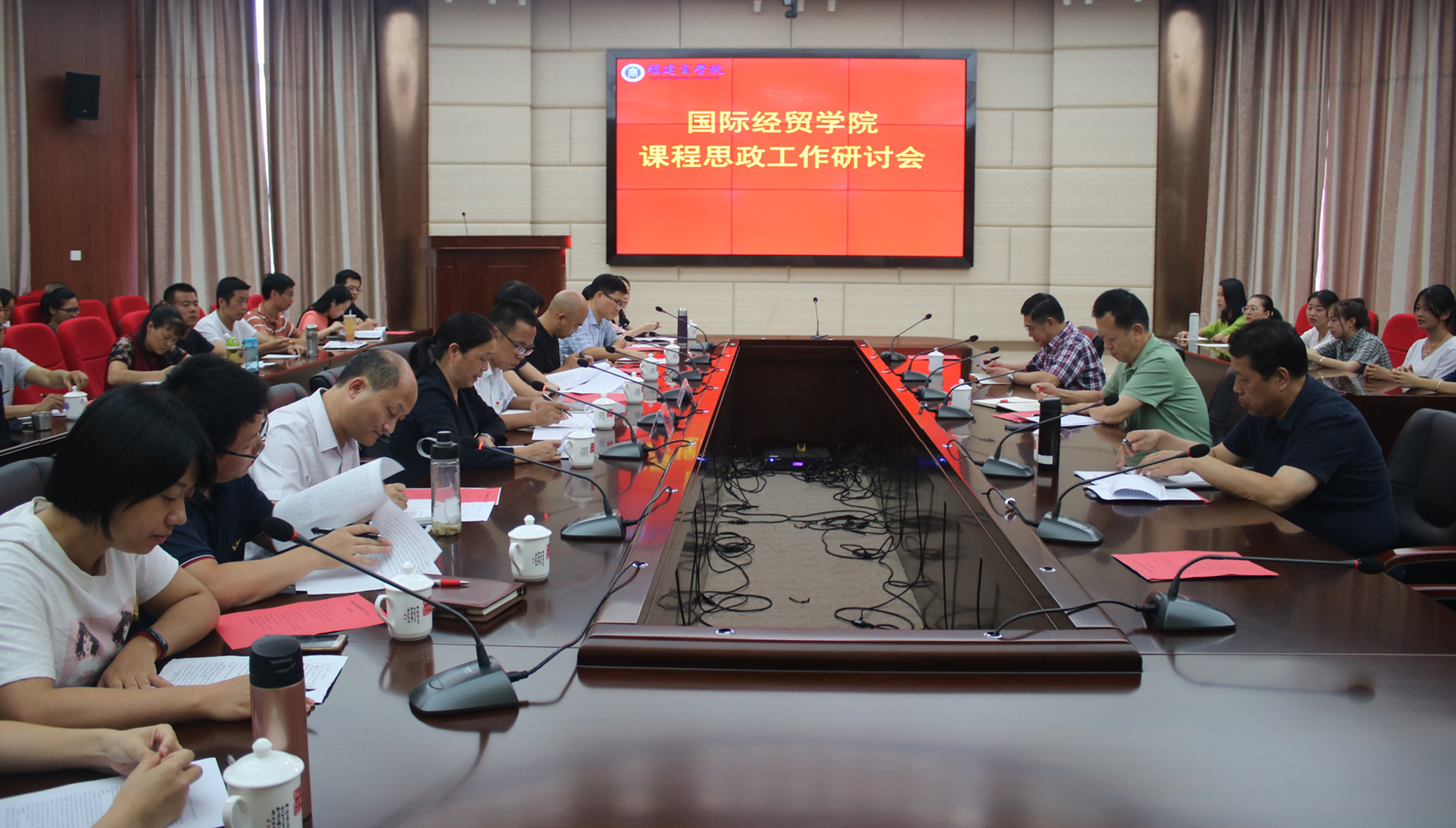 9月23日下午,国际经贸学院在连江校区视频会议室召开课程思政工作研讨会。校党委书记刘剑津、校长黄斌、校党委副书记吴访益、福建农林大学教务处副处长曾海滨、闽江学院经管学院张惠茹教授和校主题教育督促指导一组,学校相关职能部门、教学部门代表、国际经贸学院师生参与研讨。部分二级学院负责人参加研讨会。