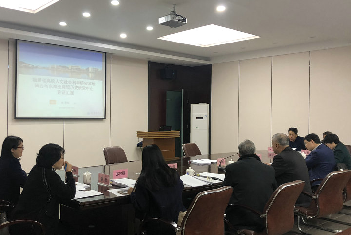 12月18日上午,经教育厅批准同意,“福建省高校人文社会科学研究基地—闽台与东南亚商贸历史研究中心”建设项目论证会在永利官网鼓楼校区召开。项目负责人黄斌校长,项目学术委员会主任全毅研究员,论证专家,以及项目团队成员近30人参加了论证会。